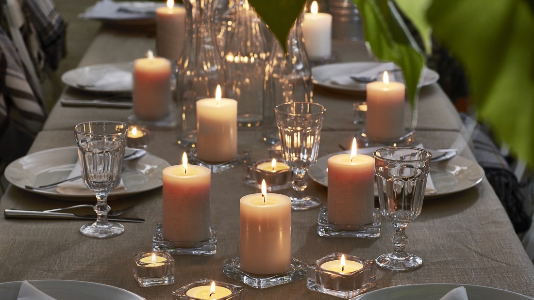 You can also place a modest centerpiece as an accent in the middle of the table to enrich the appearance without limiting movement during the meal. A simple arrangement ensures that dishes remain the focus while the decoration supports the overall atmosphere.