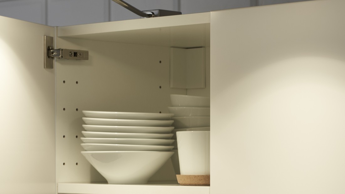 Closed shelves help keep equipment hygienic and free of insects. A sufficiently spacious interior allows storage of large pots and pans, and is easier to clean.