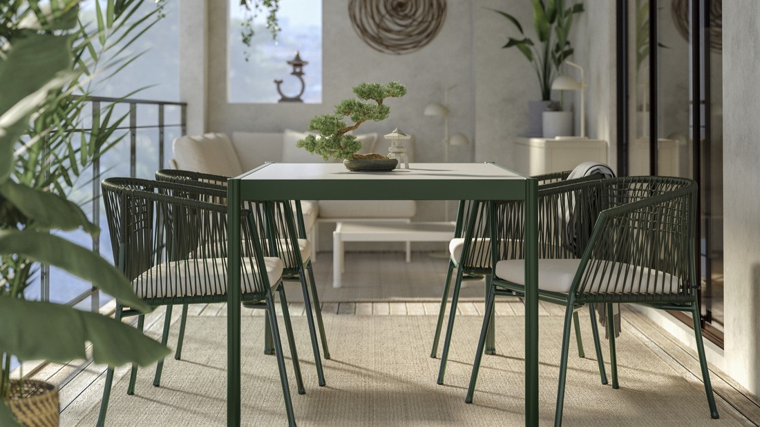 Choose a series that offers various table sizes so you can adjust them to the width of your terrace. An extendable table can also be a great option, as its capacity can be adjusted when you have guests. You can also add floor cushions to increase comfort.