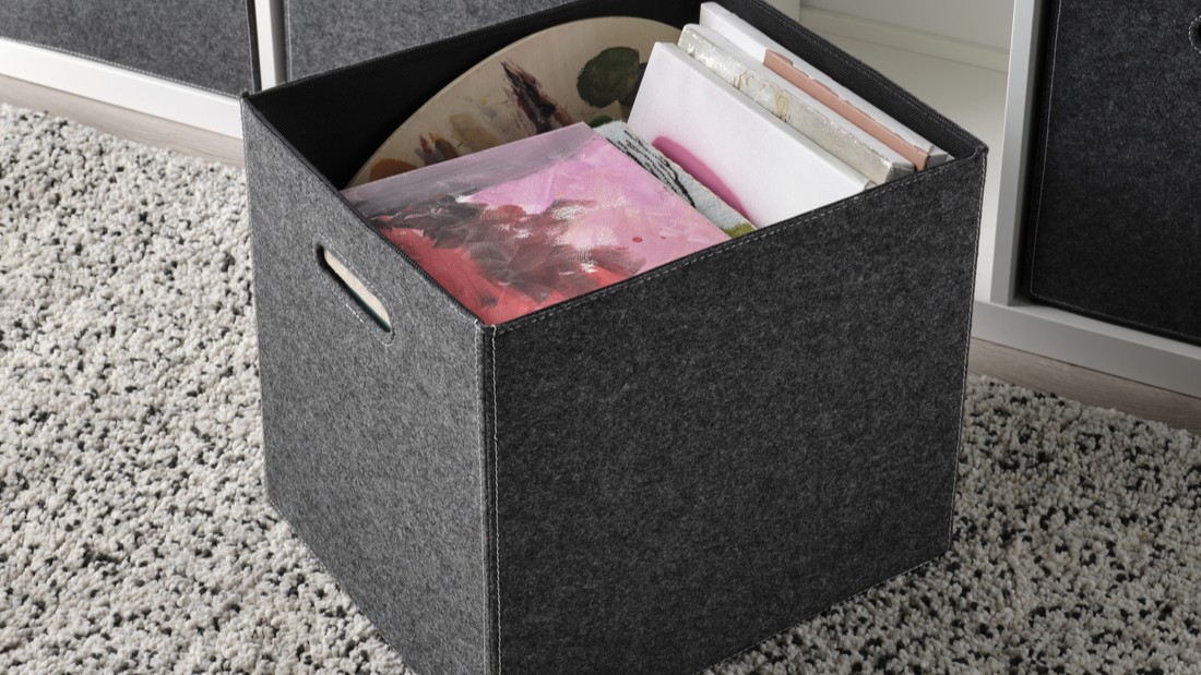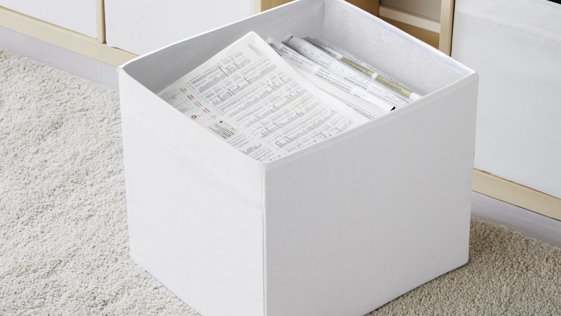 Collecting them into a special storage box keeps all items controlled in one place. Small storage boxes from IKEA are suitable for this task.