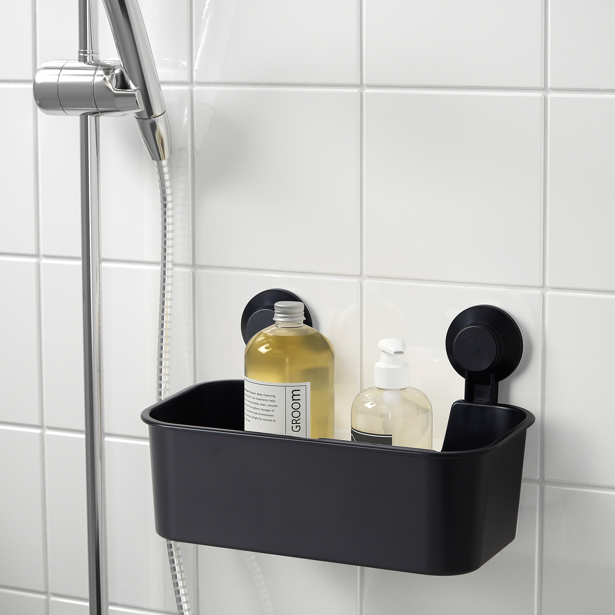 With a basket for small things, shampoo and razors, it’s easier to keep your shower and washbasin area clean. Part of the TISKEN series – practical bathroom accessories that fix in place with a push.