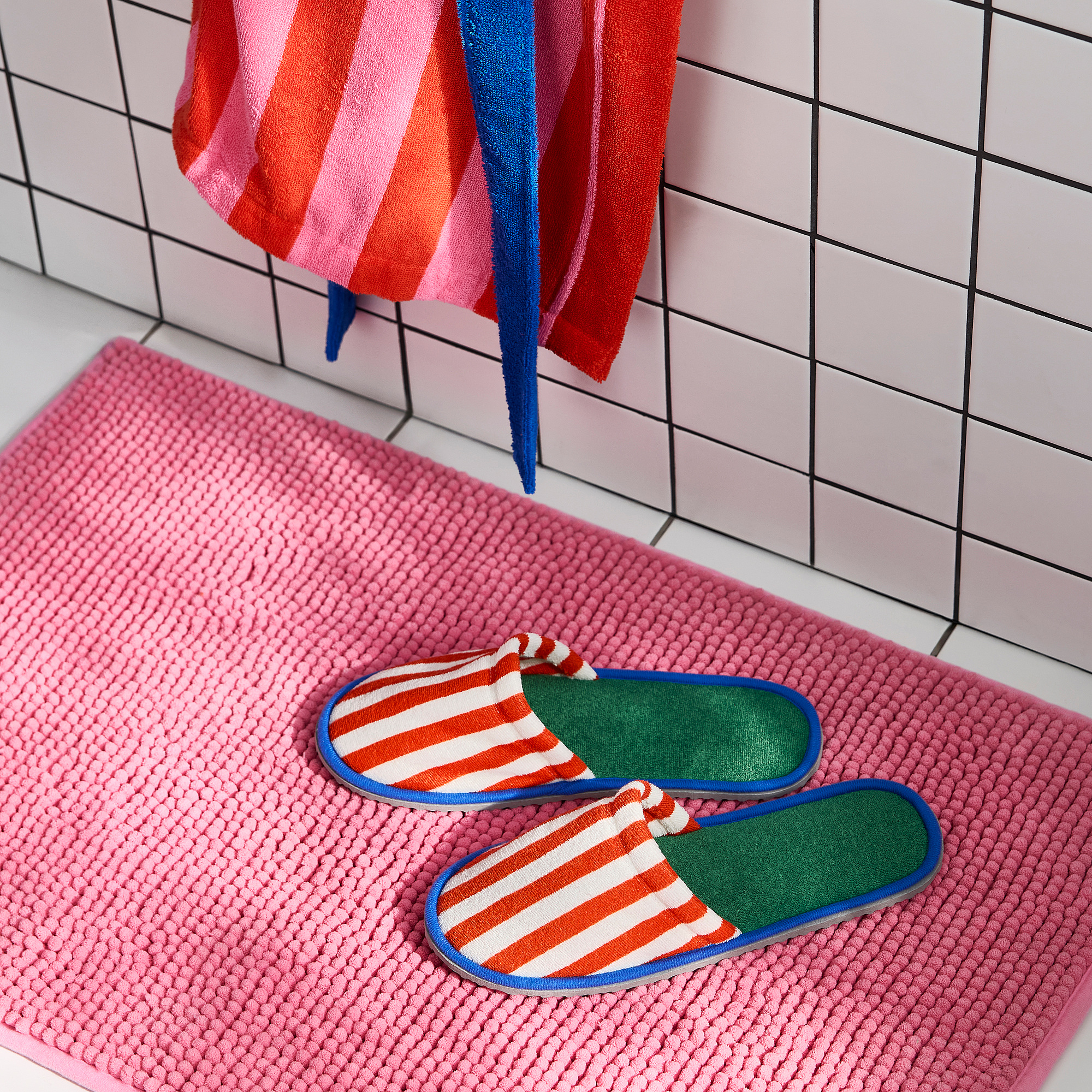 These slippers with playful stripes in a burst of colours are made for relaxing moments. Comfy slide on design with non-slip sole make lazy mornings all the cozier – your feet will thank you.