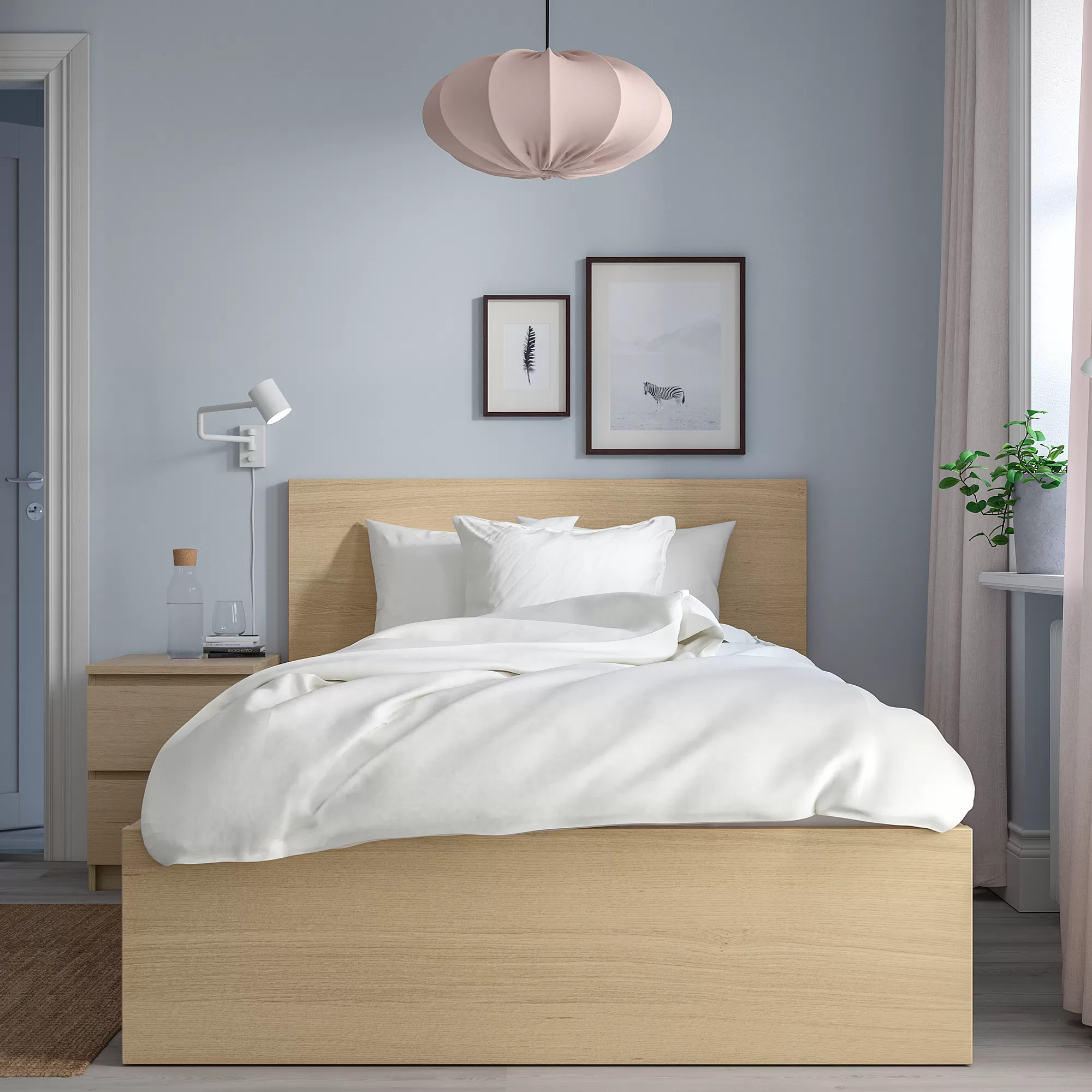 A clean design with solid wood veneer. Place the bed freestanding or with the headboard against a wall. If you need space for extra bedding, add MALM bed storage boxes on castors.