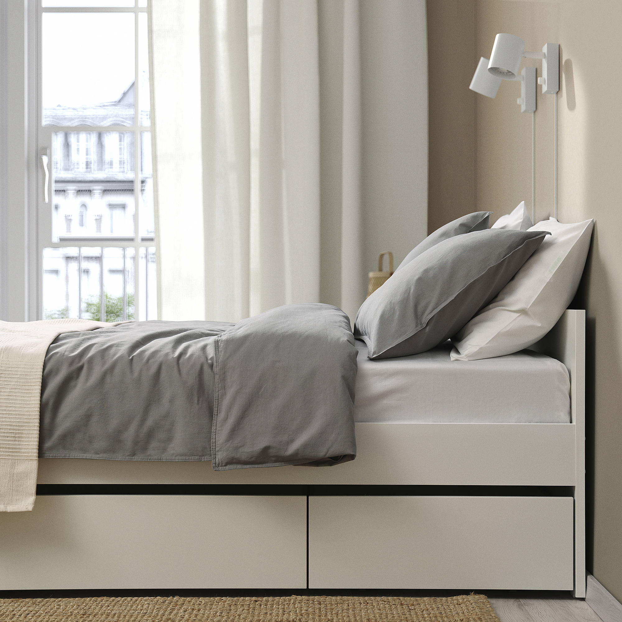 The storage boxes create space for extra duvets, pillows and bedlinens – or anything else you want to store, yet still have close at hand.