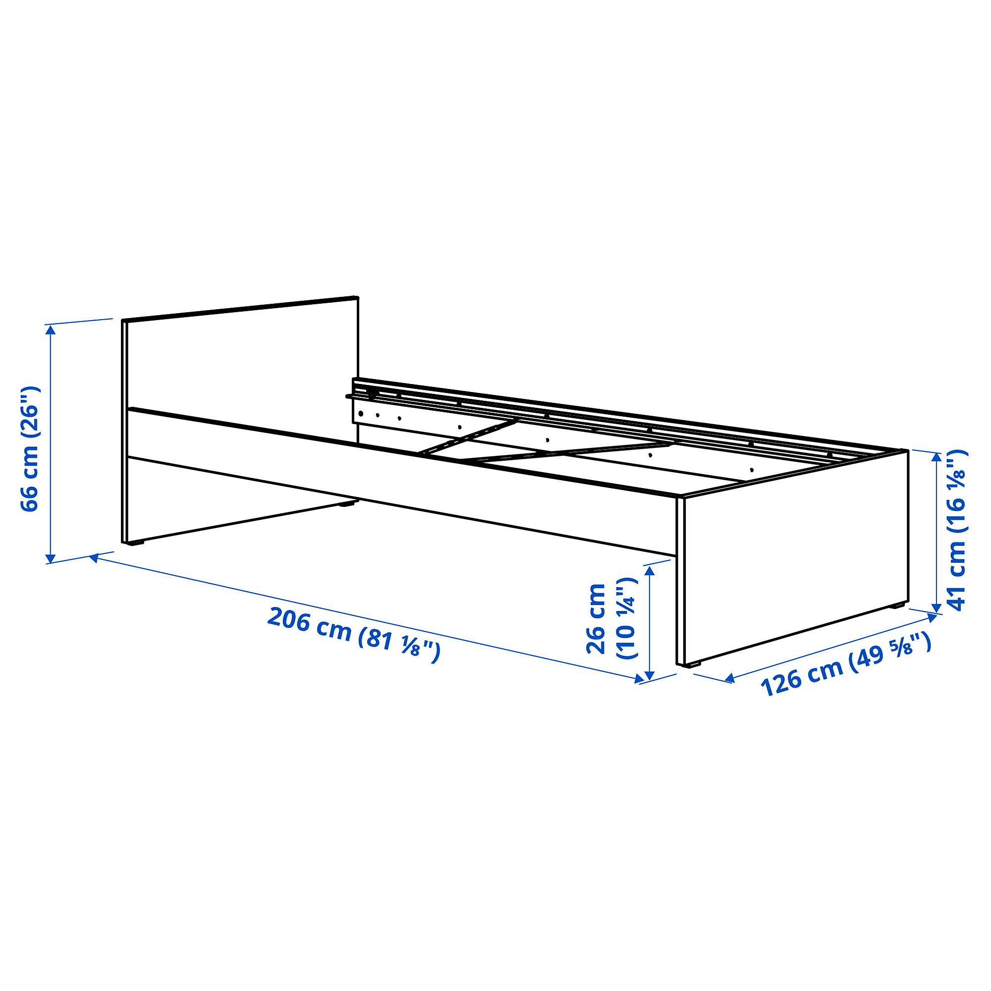 This bed frame has a simple yet versatile design with the possibility to add storage boxes or a trundle bed. A smart solution that matches the other pieces of furniture in the VIHALS series.