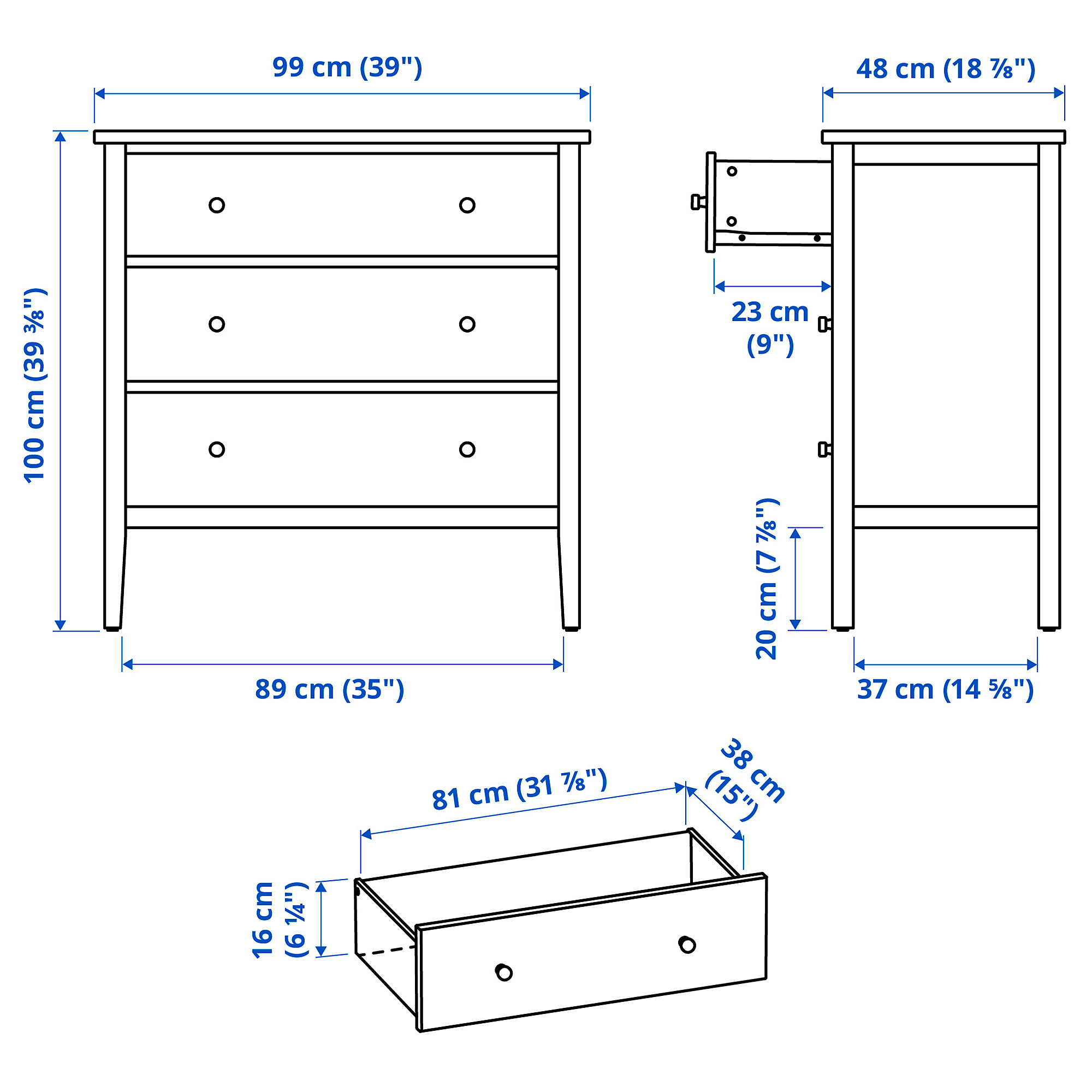 This easy-to-place chest of drawers has 3 smooth-running drawers with plenty of space for your things.