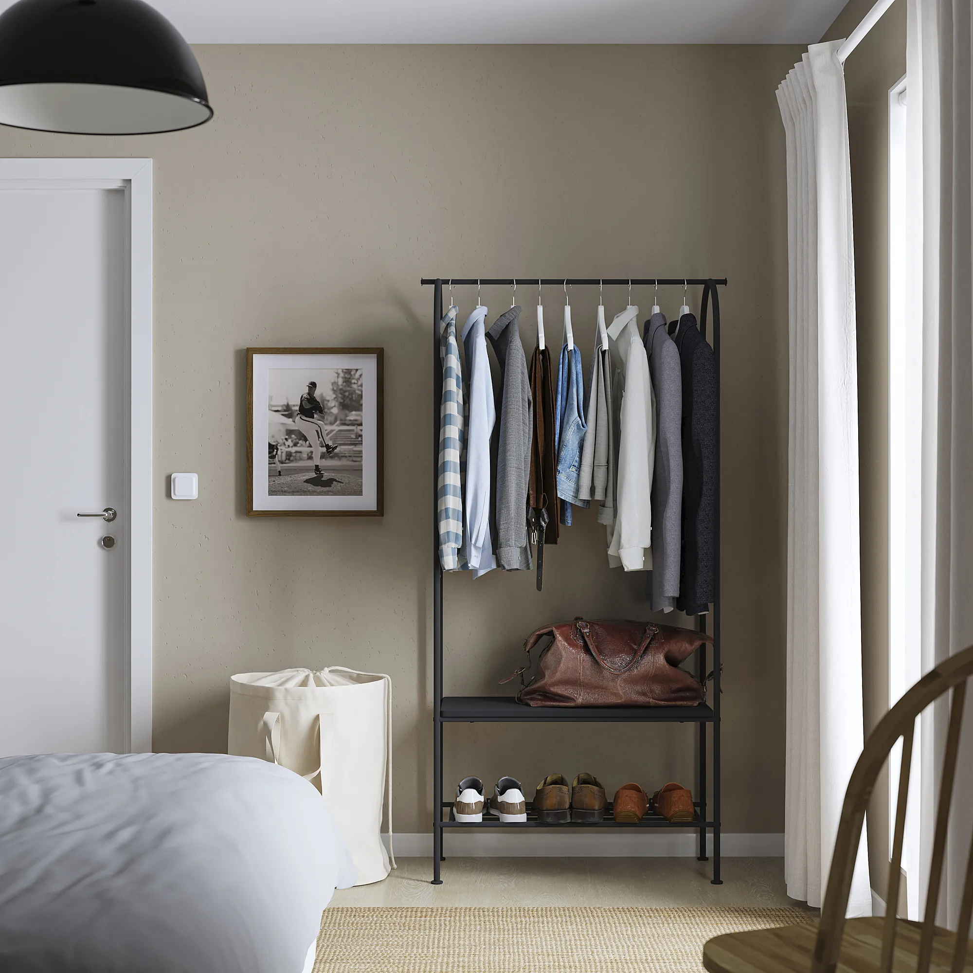 The GRÅFJÄLLET series combines industrial influences with clean and bold lines that create a timeless expression. Use the clothes rack to keep favourite clothes and shoes visible and within easy reach.