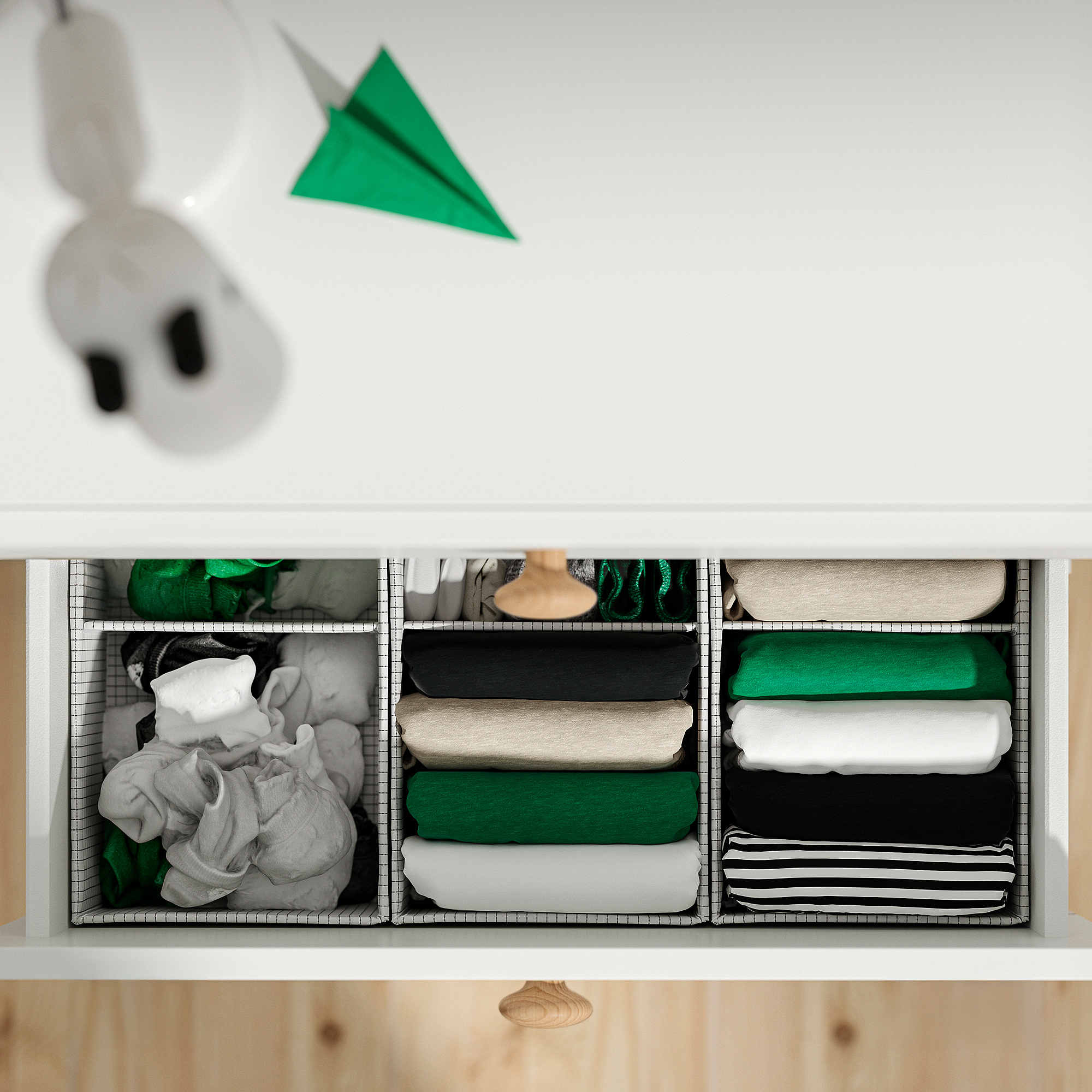 The child can easily open and close the drawers to get an overview of their things and reach themselves.