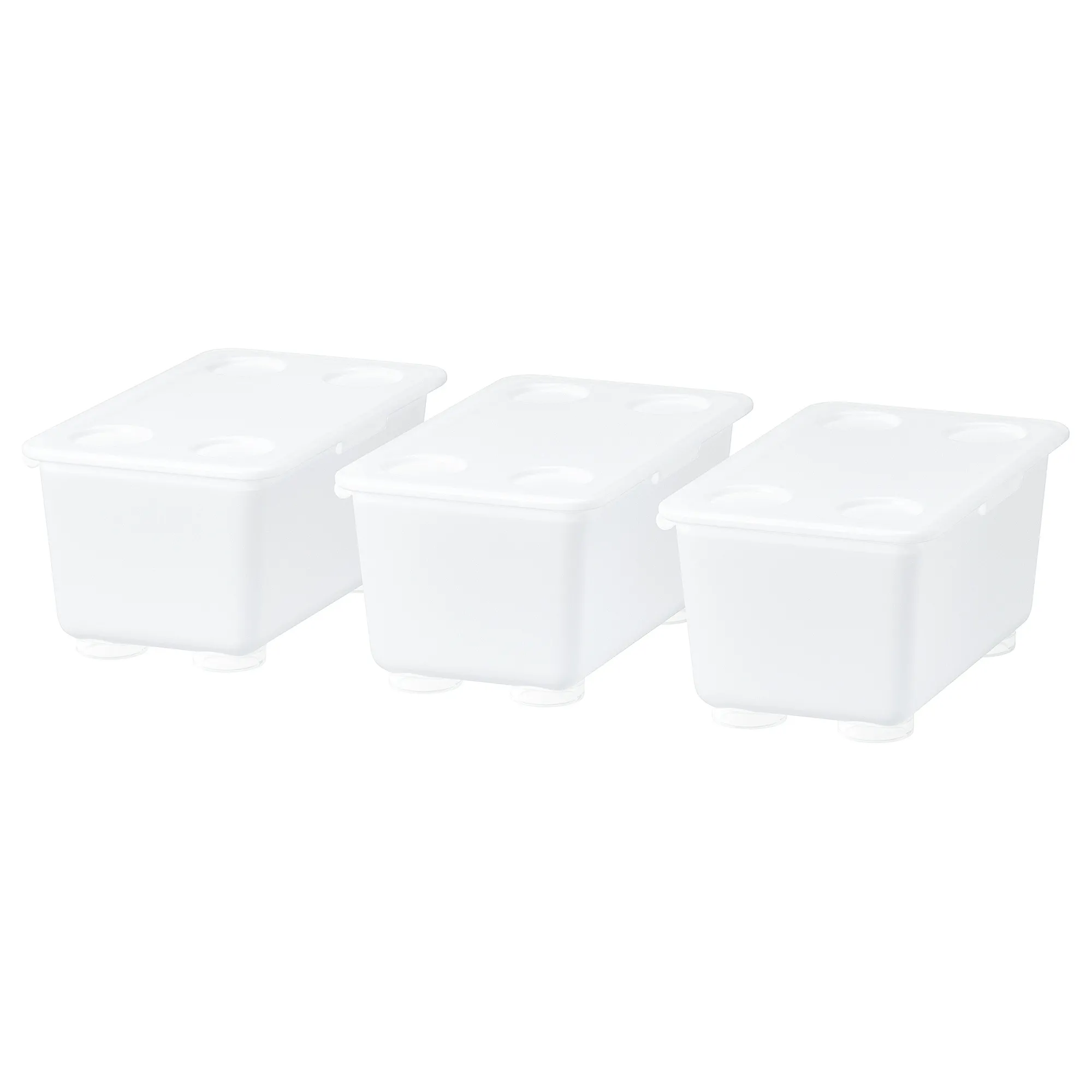 These 3 transparent and stackable boxes with lids happily take care of small toys and desk accessories until you or your child needs them again. Made of durable plastic, of which at least 50% is recycled.