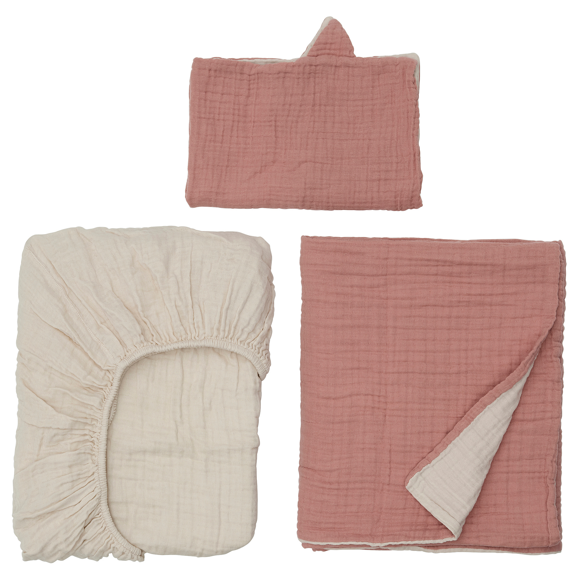 Bedlinen set with everything needed to create a cosy nest for your baby – a duvet cover, pillowcase and fitted sheet. All in GOTS-certified organic cotton muslin that breathes and is soft against the skin.