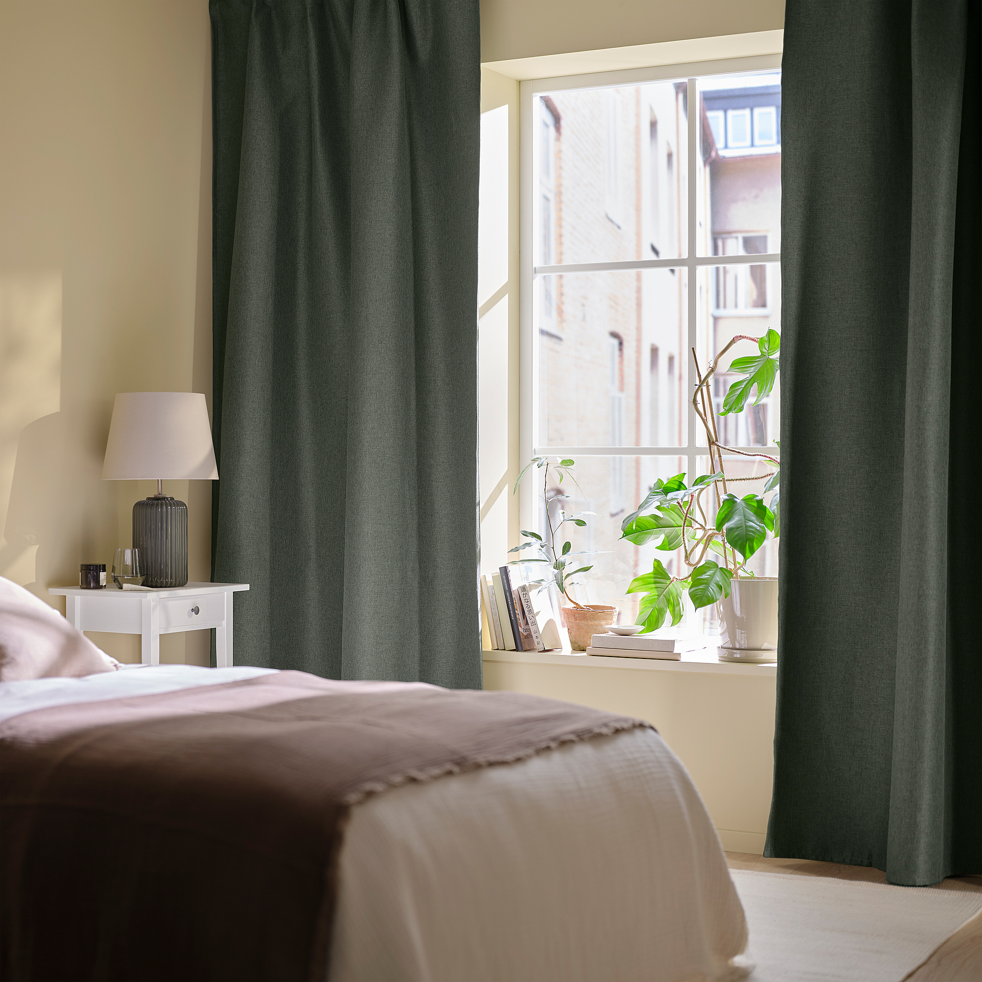 The premium fabric construction allows ANNAKAJSA room darkening curtains in dark green to fall elegantly, and helps to retain a comfy indoor climate. 250 cm length is ideal for hanging above the window.