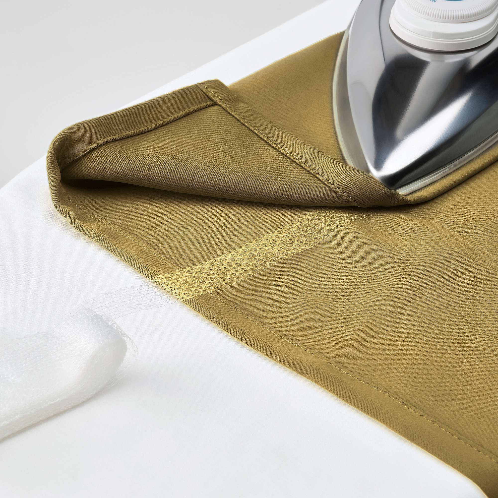You can use SY iron-on hemming strip to shorten the curtains without sewing.