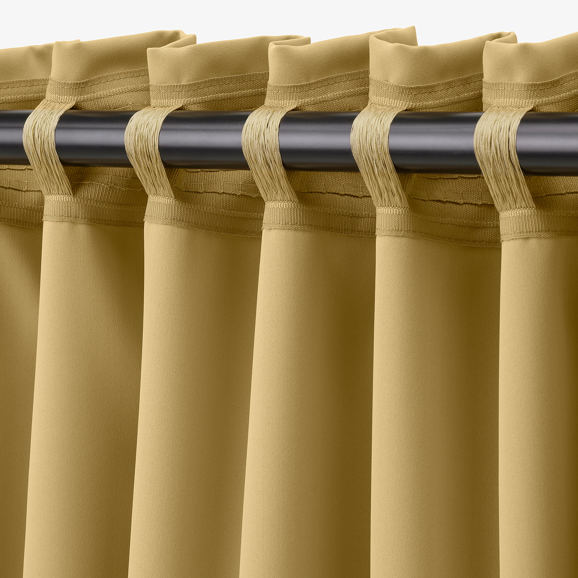 MAJGULL room darkening curtains in beige-yellow have a chic, butter-soft texture. The pleats fall beautifully and the fabric offers privacy during the day. Multi-way header for different hanging options.