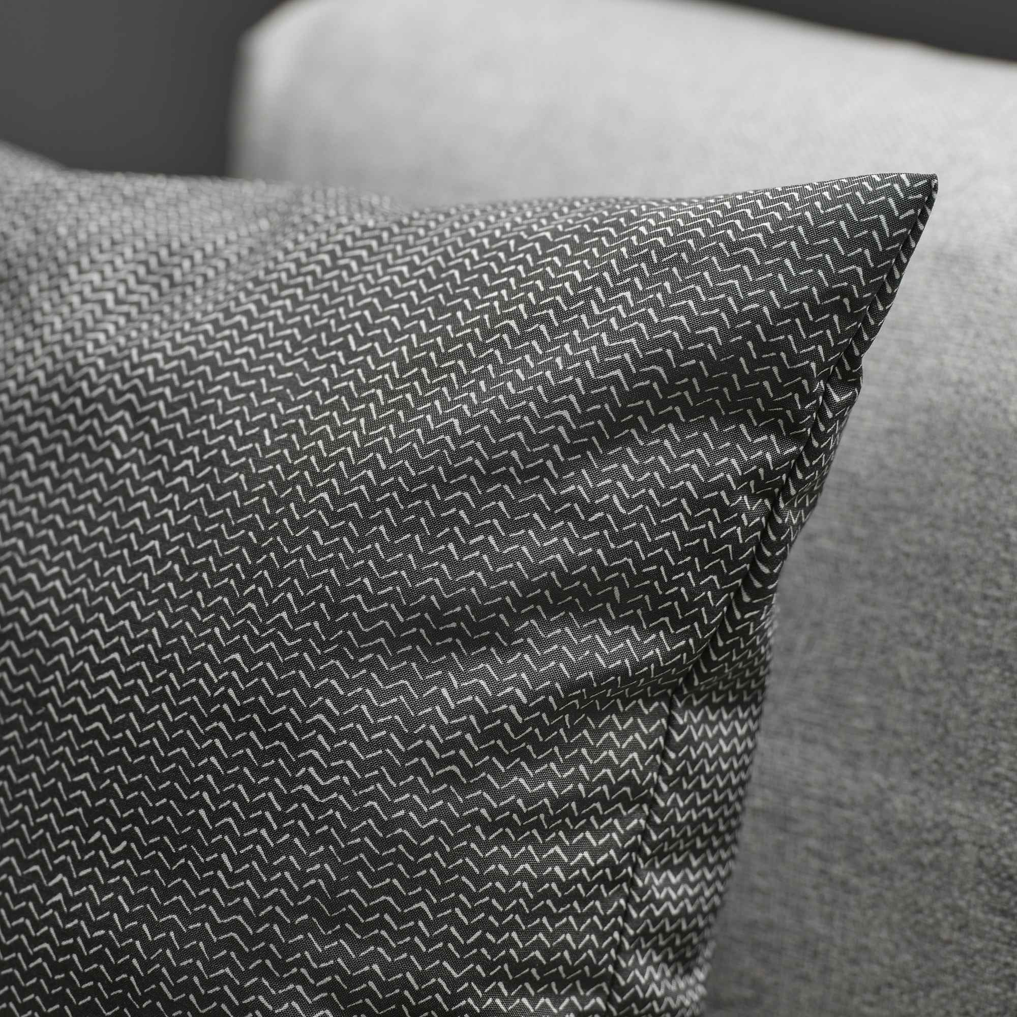 PROFETBLOMMA cushion in anthracite with a subtle pattern and delicate sheen adds style and comfort to your sofa. Pairs perfectly with GURLI cushion covers and HOLMVI throws. 100% recycled polyester.