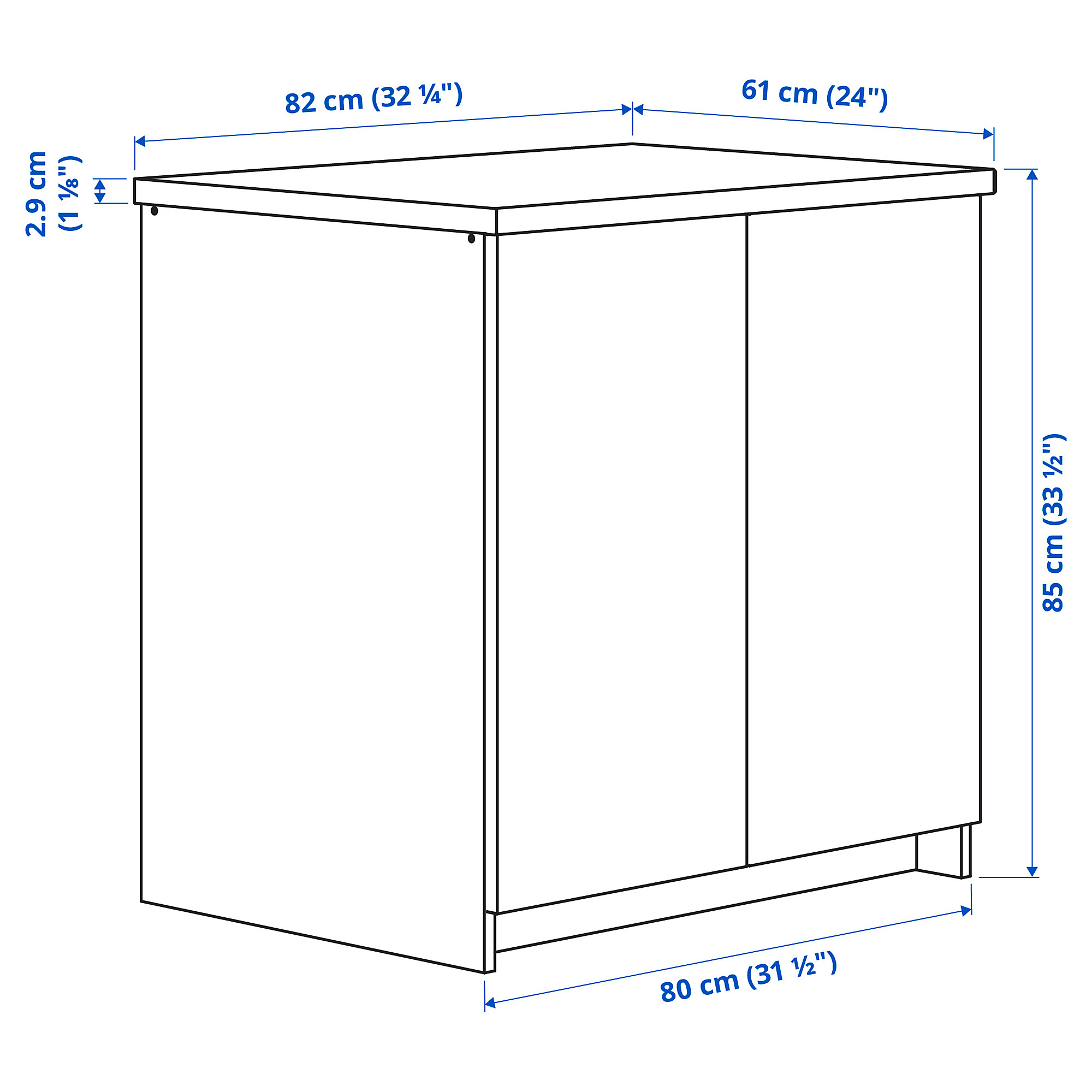 Included: cabinet, doors, worktop, legs, plinth, shelves, hinges and fittings.