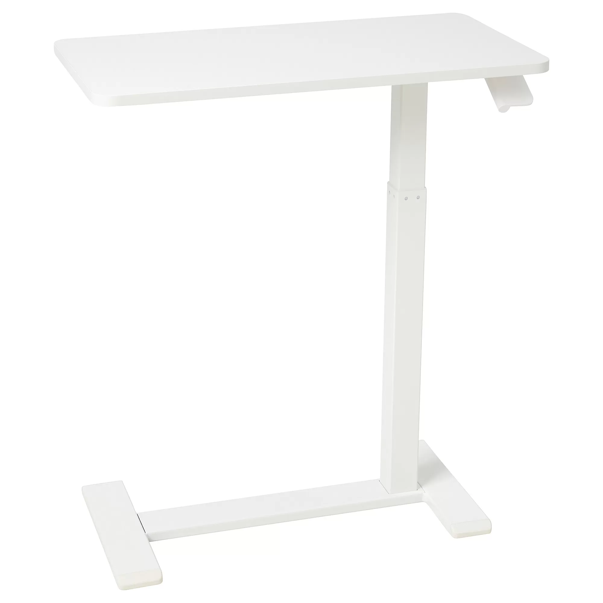 Height-adjustable using a gas spring mechanism. No cables are attached so it easy to move the table to where you need it.