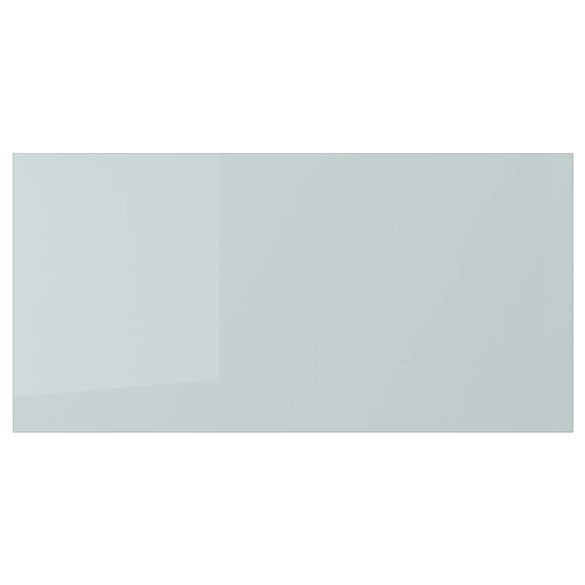 KALLARP fronts in high-gloss grey-blue have an ultra-modern feel and are spot on for everyday life in the kitchen. Made partly from recycled materials at factories powered solely with renewable sources.