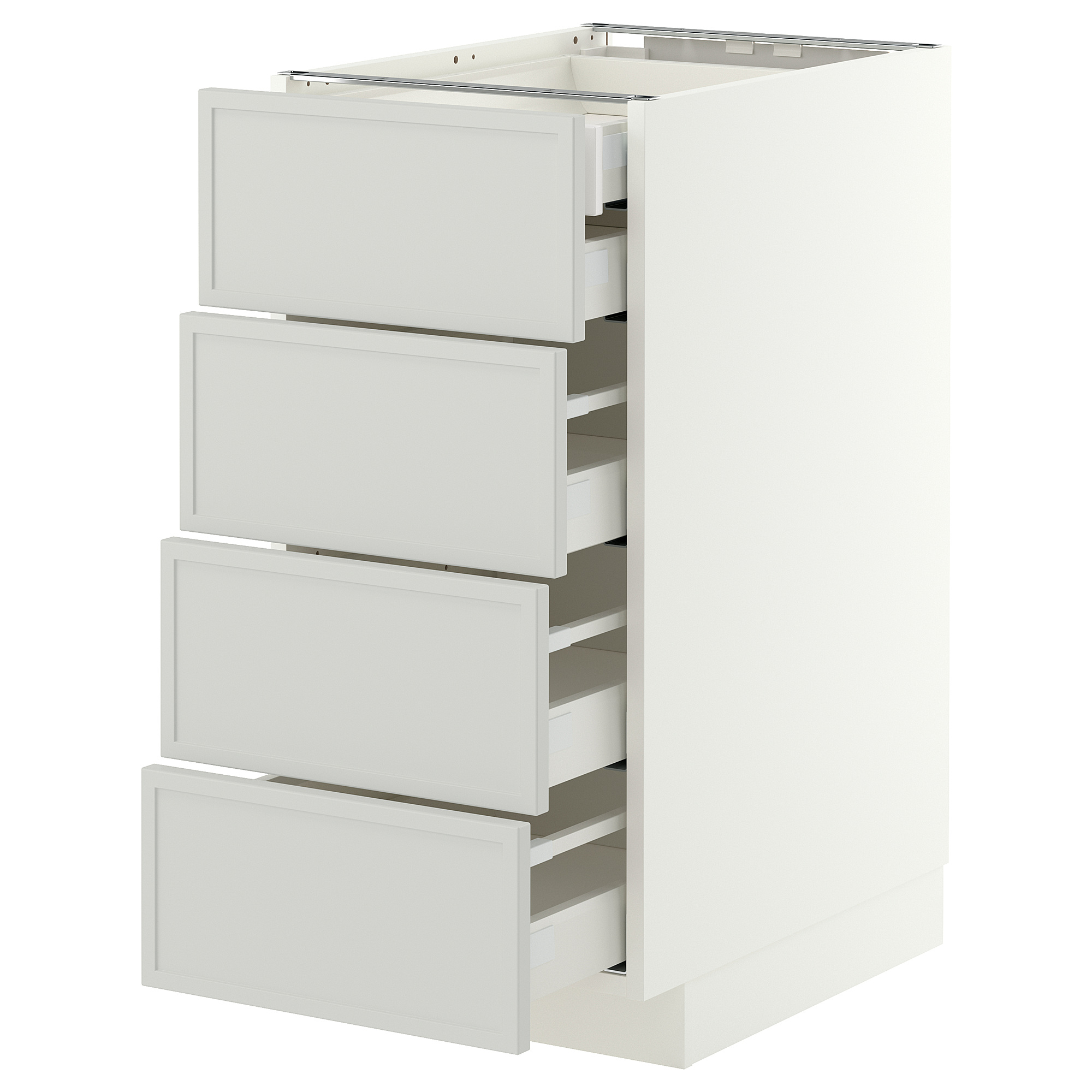MAXIMERA drawer is a smooth-running, full-extension drawer with built-in dampers so that it closes slowly, softly and quietly.