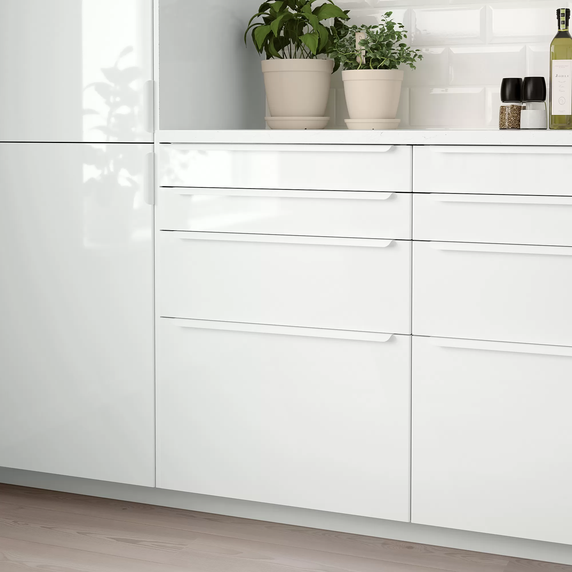 RINGHULT kitchen drawer front has clean, straight lines and a glossy surface which is durable and easy to keep clean. With RINGHULT you get a light kitchen with a modern feeling.