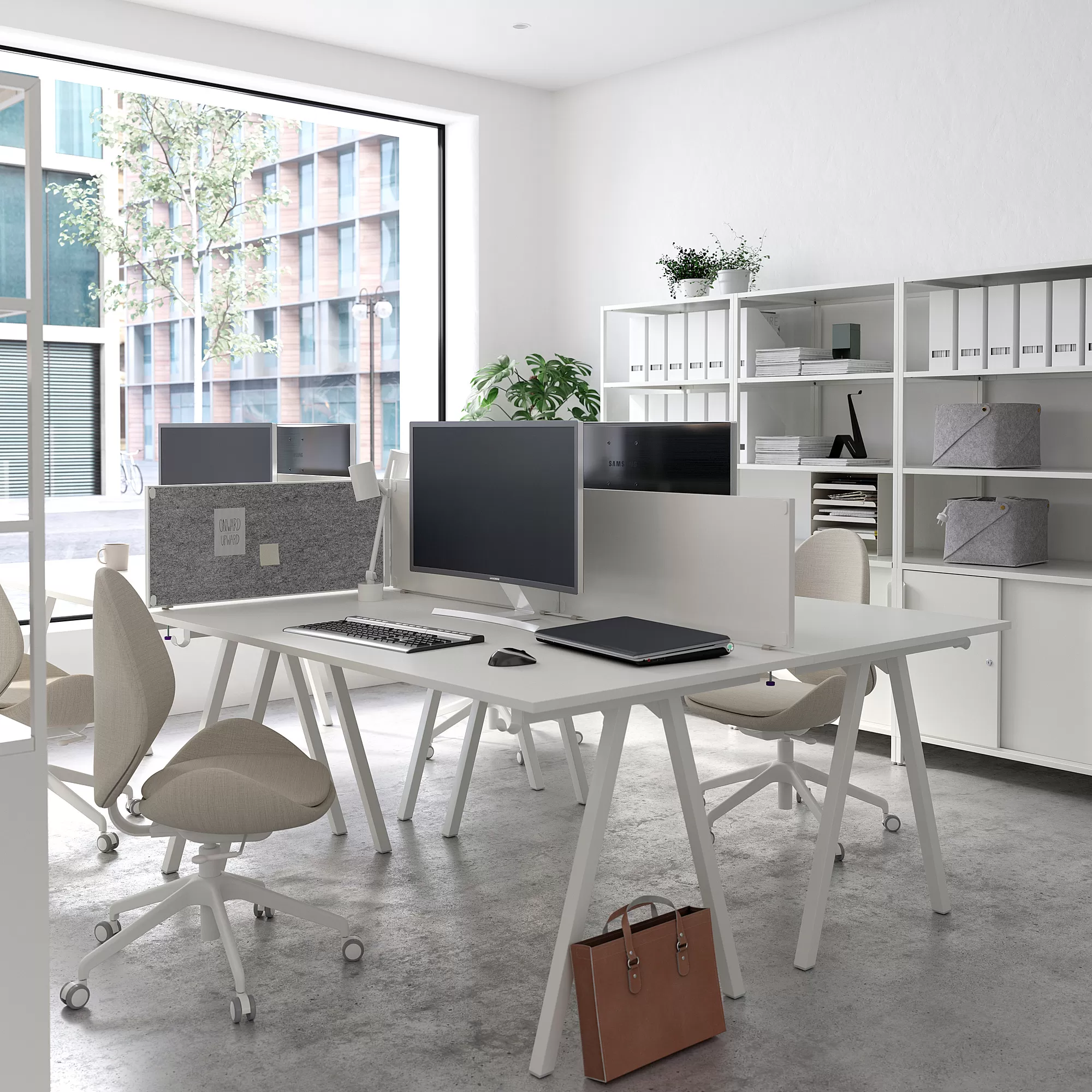 TROTTEN desk that fits in every space – at your office or at home. The A shape of the legs is a smart design feature that allows you to use all the space under the desk for your office chair and storage.