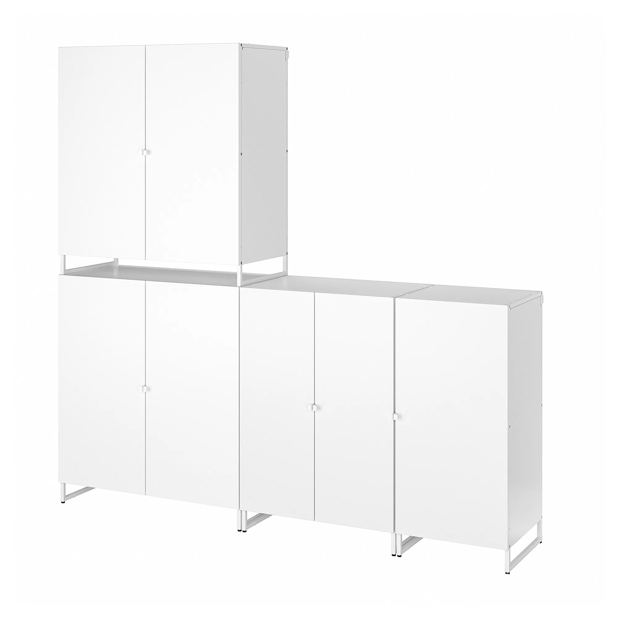 By mounting the doors with back/side panels on a JOSTEIN shelving unit combination, you transform open shelves into closed storage cabinets.