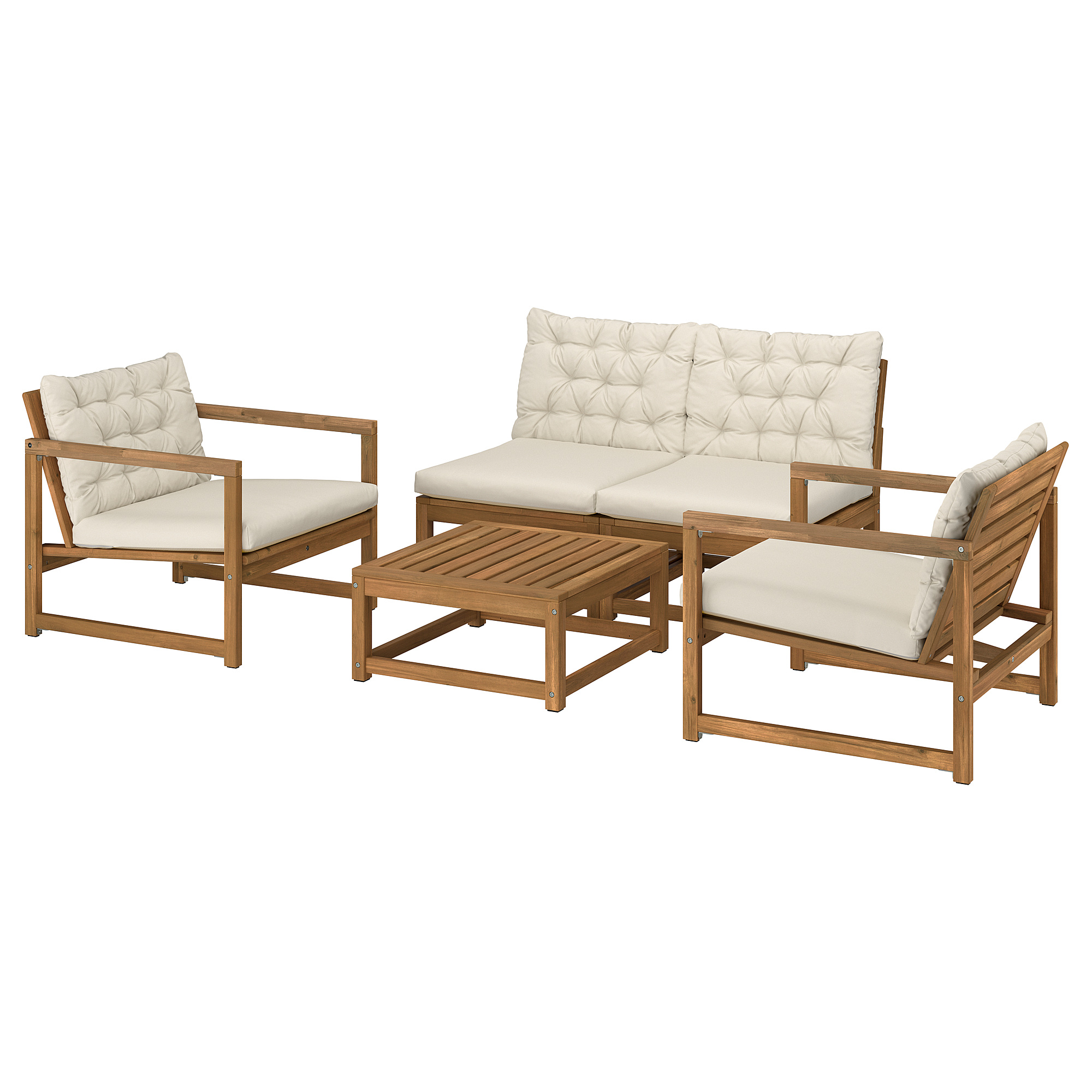4-seat conversation set, outdoor, light brown stained/kuddarna light grey-beige