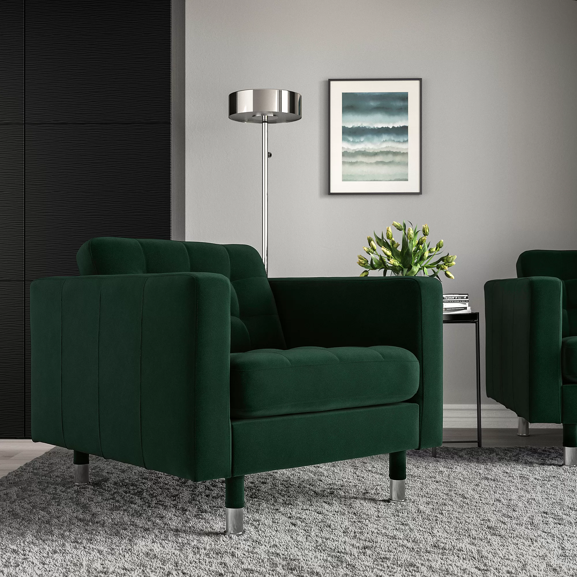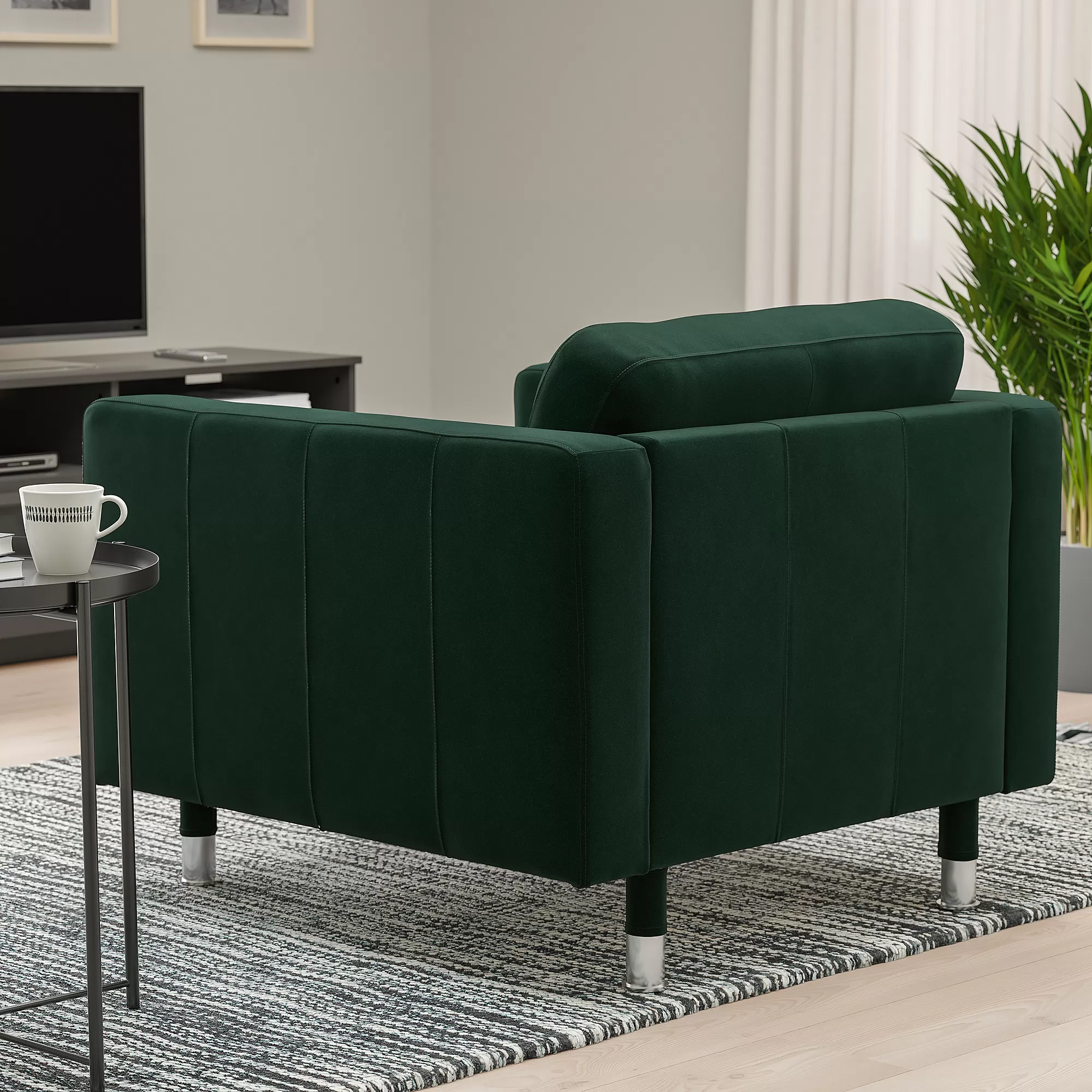 Djuparp cover is made of velvet which, through a traditional weaving technique, gives the fabric a warm, deep colour and a soft surface with a dense pile and light, reflective shine.