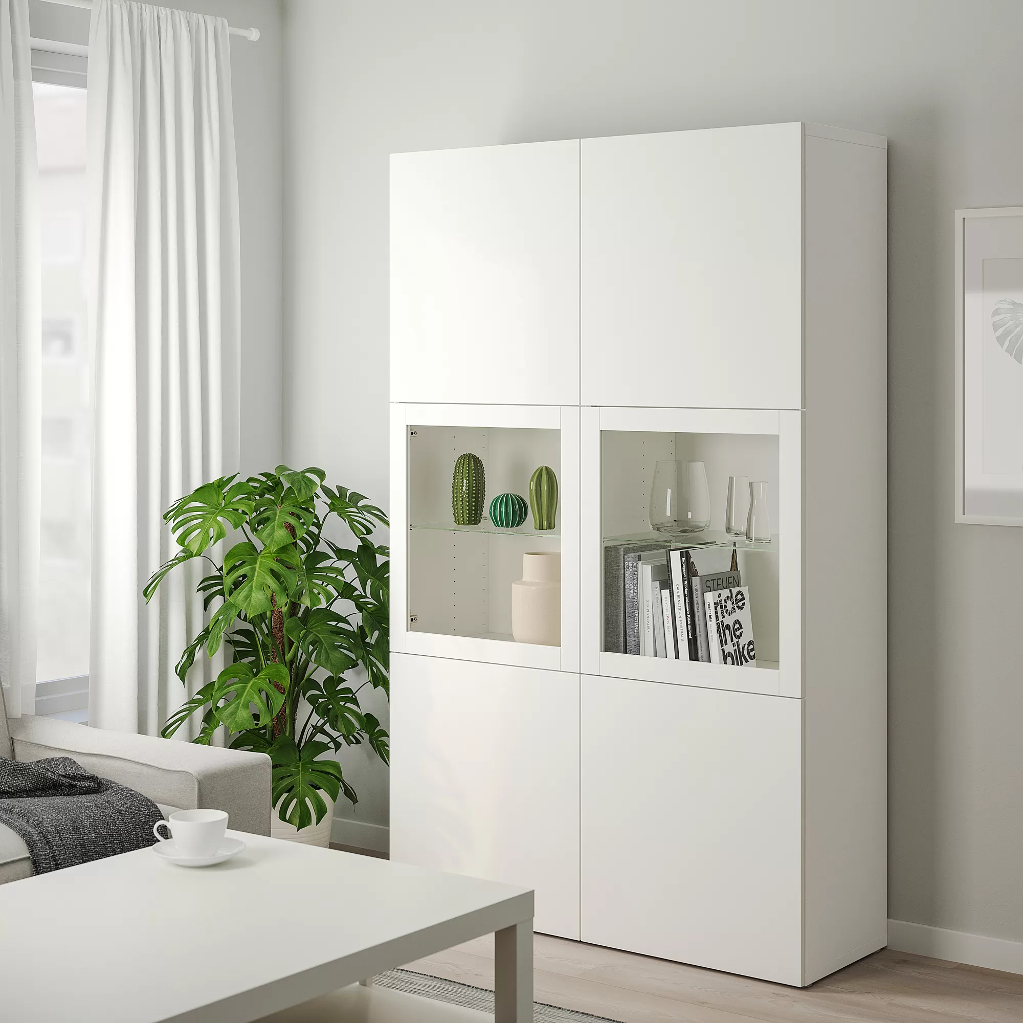 Things that tend to get cluttered can be placed out of sight while your favourite objects can be showcased behind glass doors. A storage-and-display solution is practical and tells a story about yourself.
