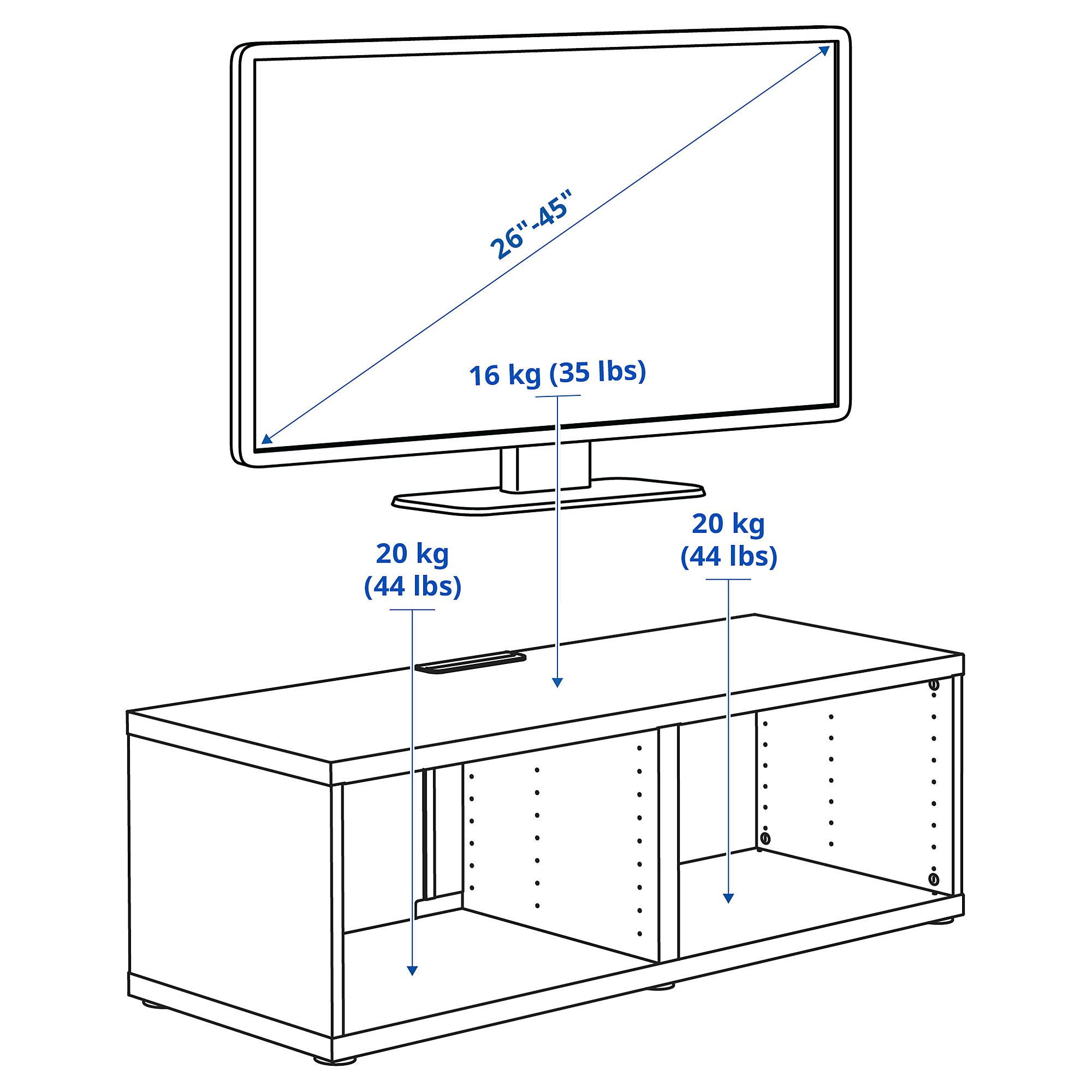 120 cm wide TV benches require 6 legs or 4 legs and one BESTÅ supporting leg.