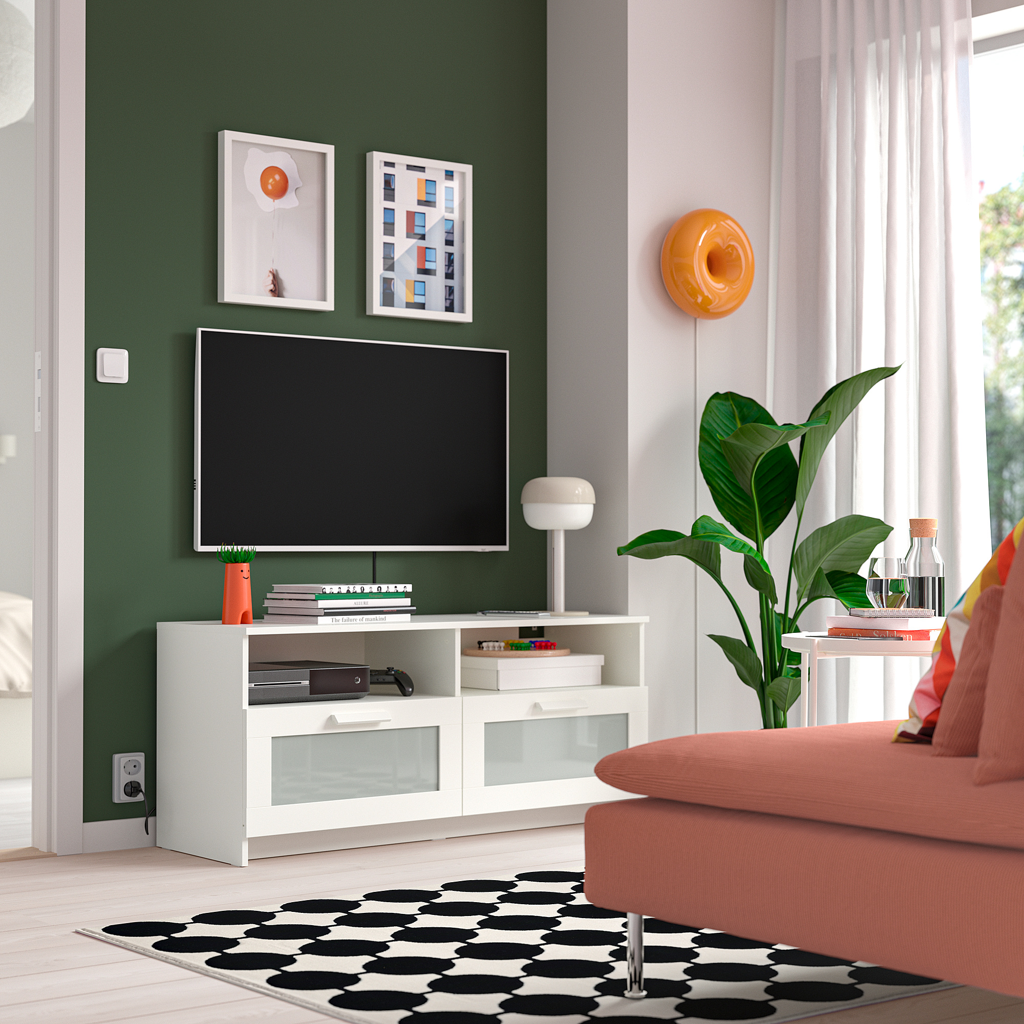This TV-bench has large drawers that make it easy to keep remote controls, game controllers and other TV accessories organised.