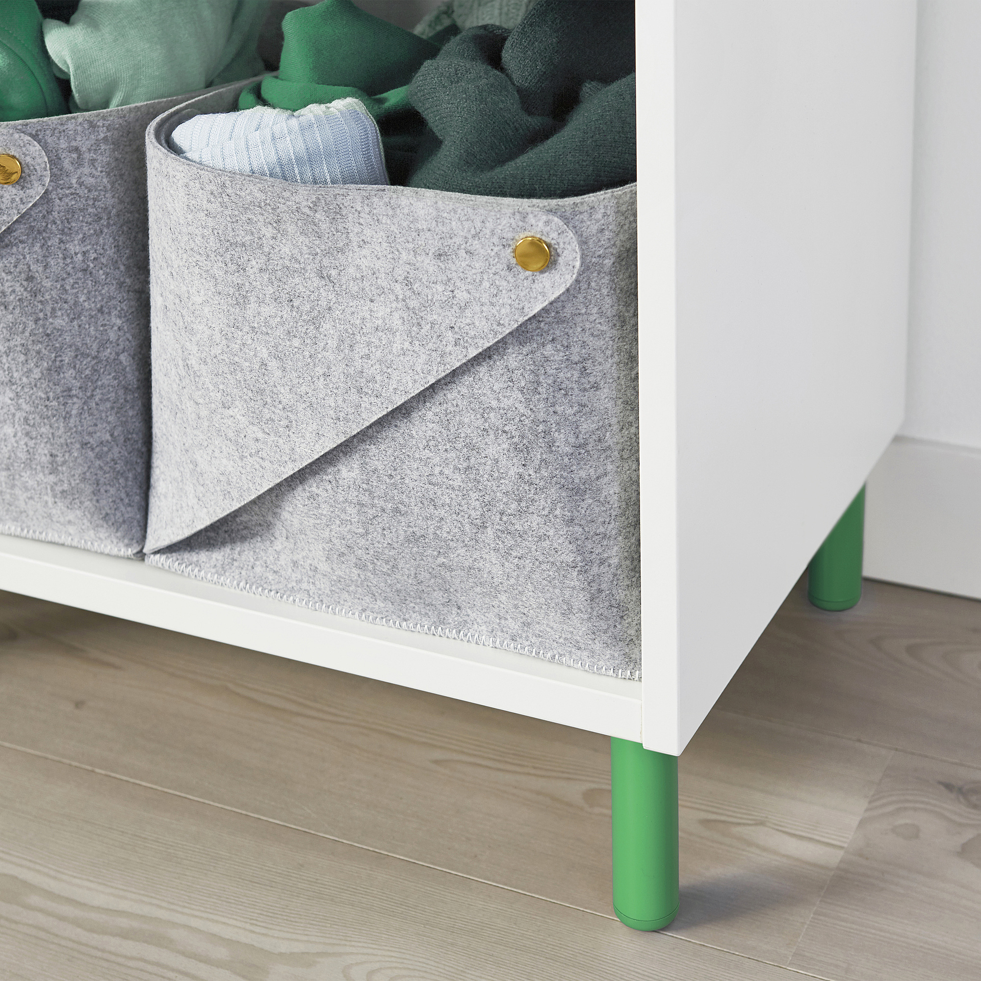 LÄTTHET legs in spring green give your PLATSA storage combination a colourful boost – whether you choose a solution completely in green or use them as accents.