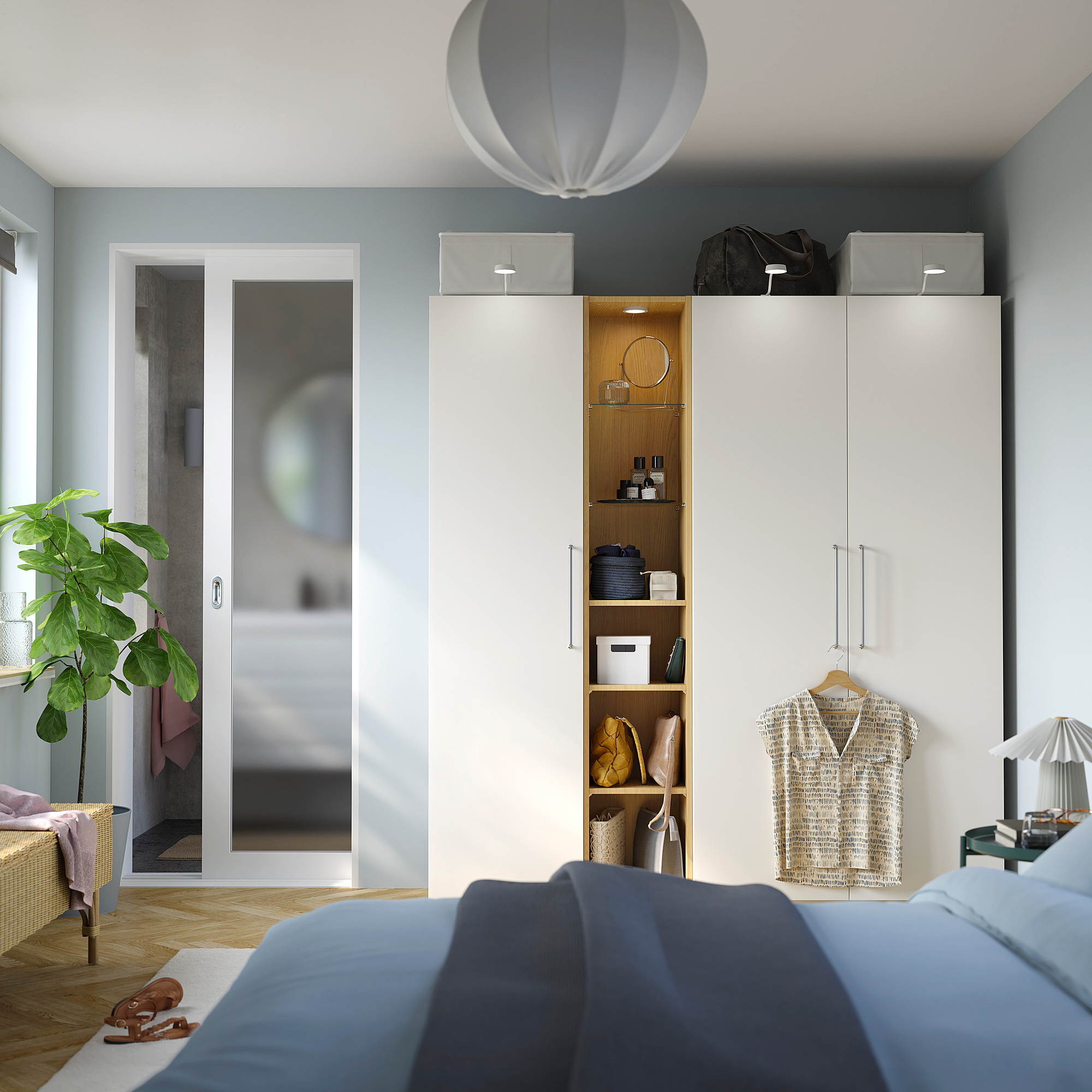 PAX mid-unit has a simple and timeless design that is easy to personalise by adding boxes, baskets and lighting.