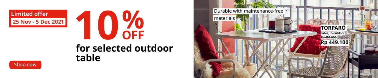 Undang teman-teman Anda ke dalam pengalaman luar ruang yang nyata – dan adanya di balkon Anda! Personalisasikan dengan cara menambahkan bantal-bantal dengan warna favorit Anda untuk menciptakan area tempat duduk yang penuh gaya dan juga nyaman.
