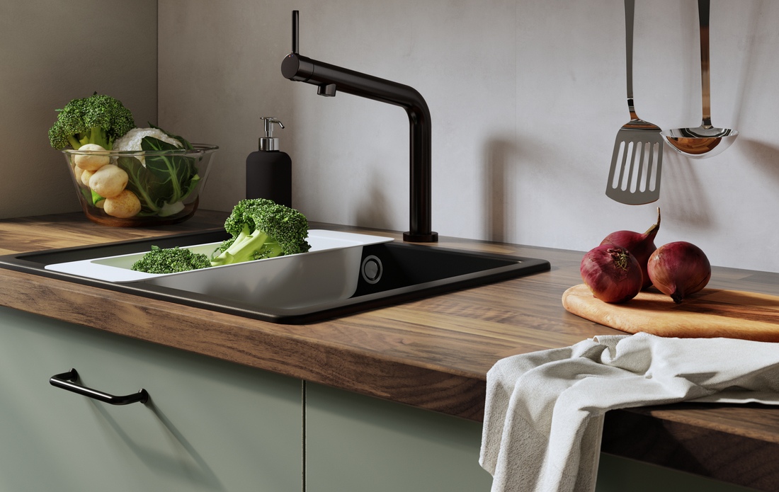 Setiap elemen dipilih bukan hanya karena tampilannya, tetapi juga karena kegunaannya dalam menciptakan ruang dapur yang efisien serta berkarakter.