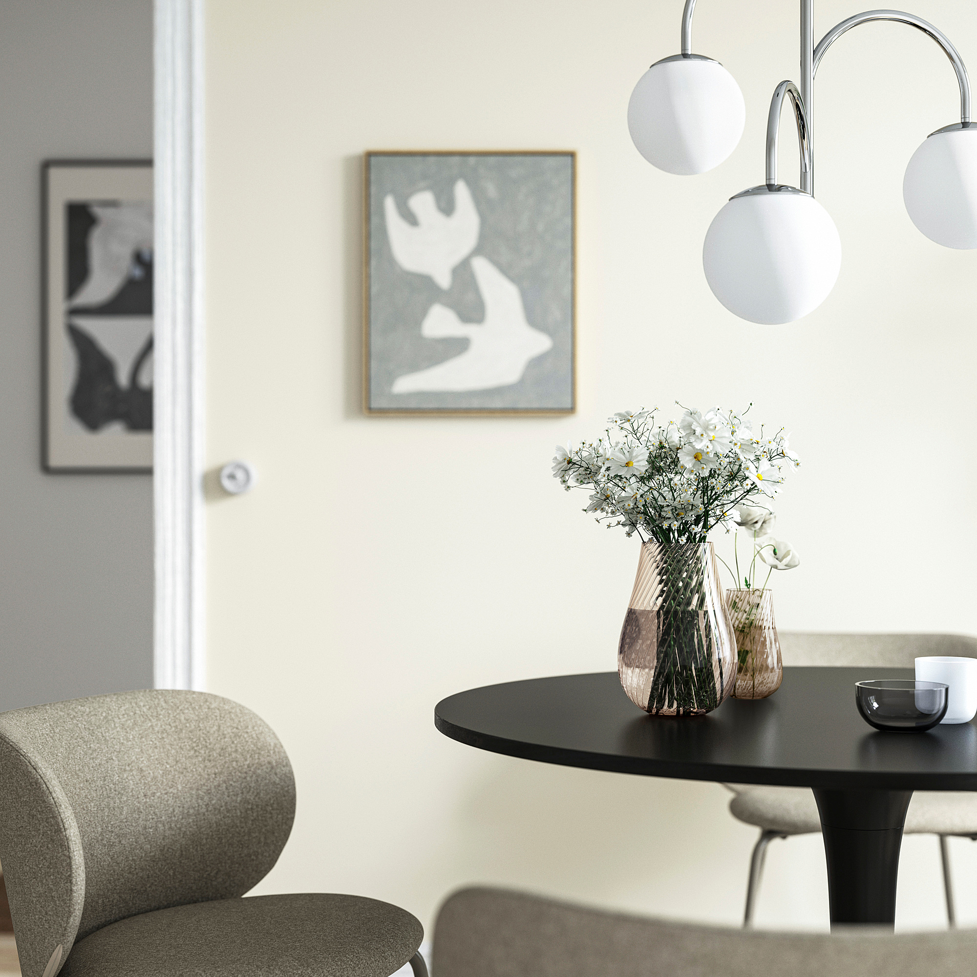 Desain berbentuk tetesan air, warna cokelat muda yang hangat, dan pusaran yang mengalir di bagian dalam yang memantulkan cahaya dan menciptakan gerakan, membuat vas bunga ini menjadi penarik perhatian yang halus namun berkarakteristik di ruangan.