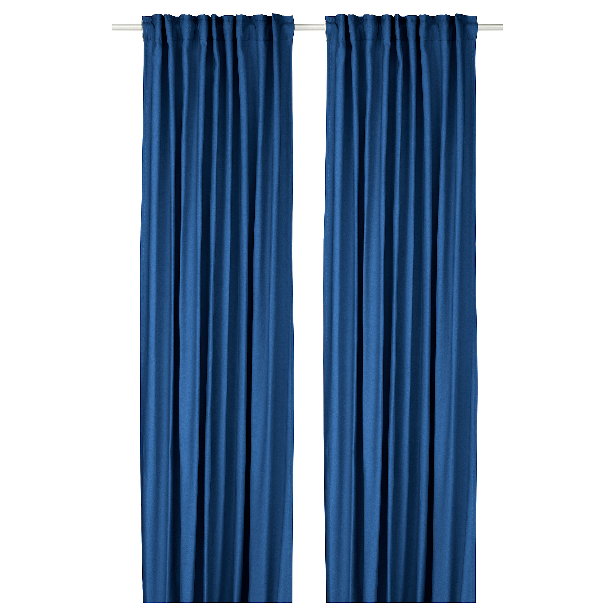 Tirai GINSTMOTT berwarna biru tua menambah ketenangan pada interior apa pun, membiarkan cahaya masuk dan memberikan rasa privasi yang tenang. Poliester daur ulang yang ringan dan tahan luntur memberikan lipatan yang anggun.