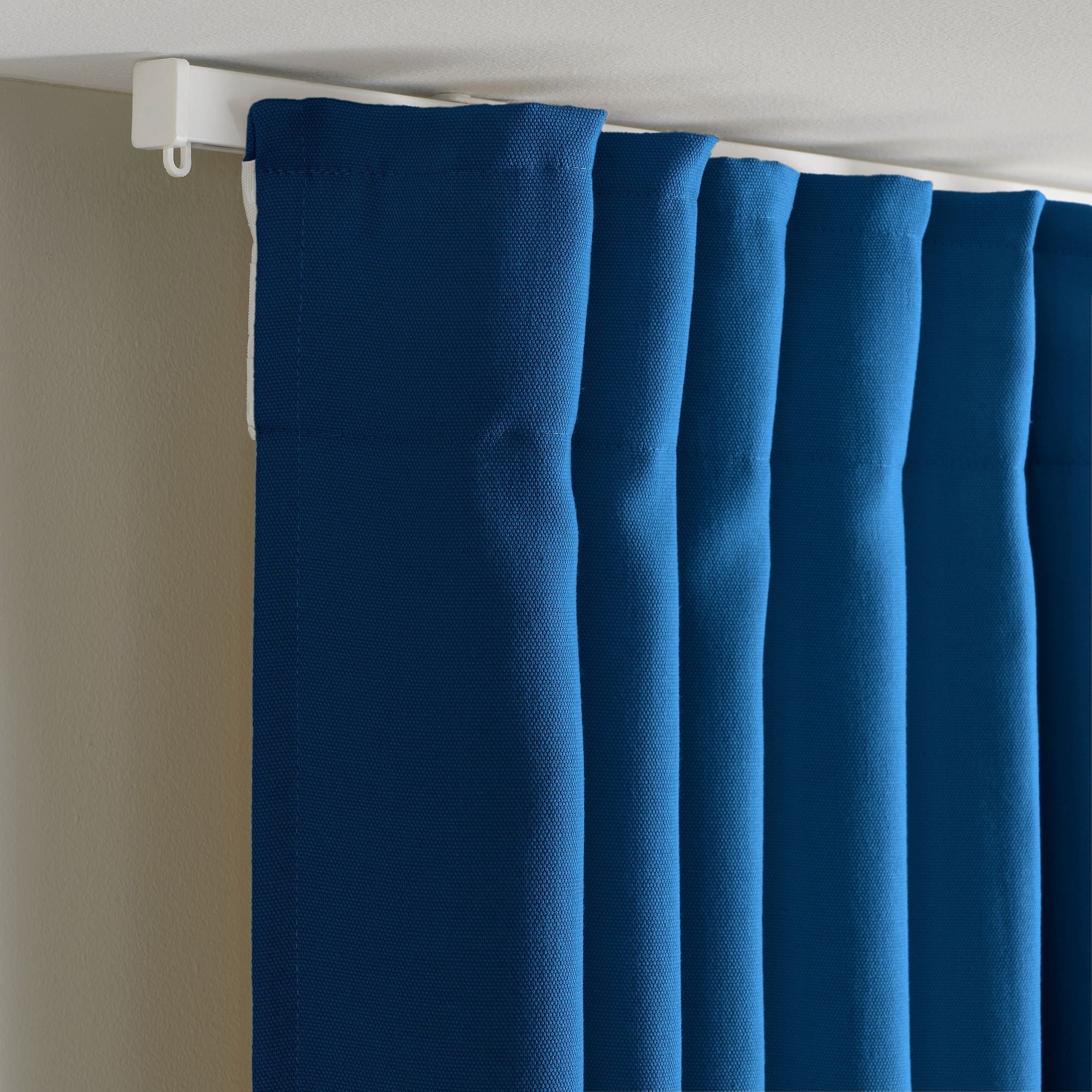 16 peluncur dan pengait biasanya direkomendasikan untuk setiap gorden dengan lebar 145 cm. Anda dapat menambah atau mengurangi jumlahnya, tergantung pada apakah Anda menginginkan lipatan yang lebih sempit atau lebih penuh pada lipatannya.
