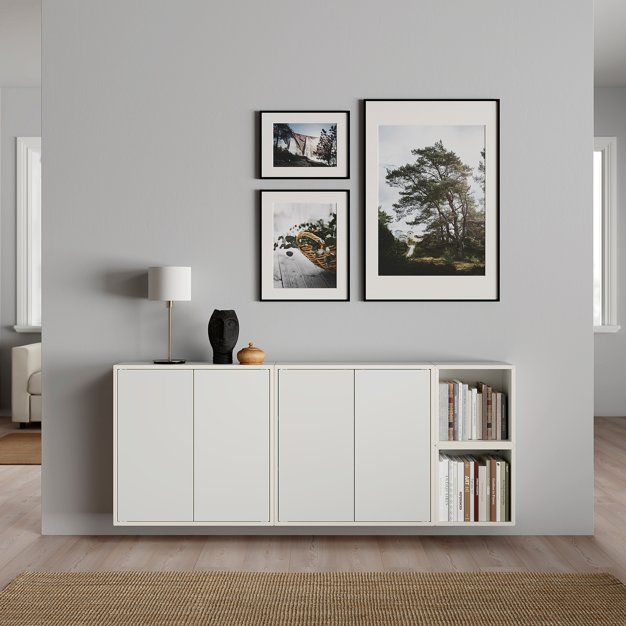 Hiasi dinding Anda dengan EKET! Ciptakan solusi penyimpanan klasik hanya dengan beberapa kabinet atau gabungkan sesuai keinginan Anda dengan cara yang menyenangkan dan spontan dan buat ruang terasa lebih personal.