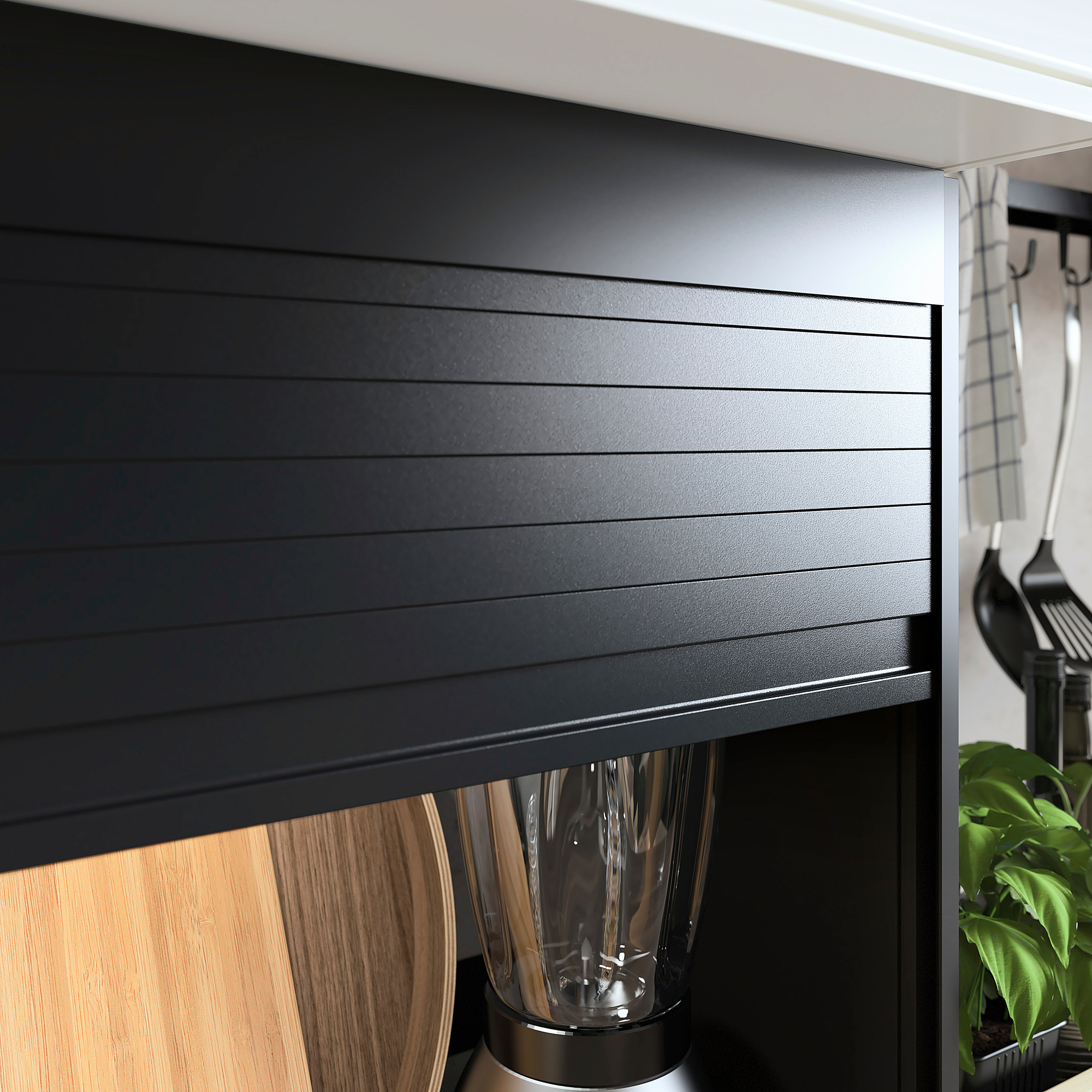 Tempat persembunyian rahasia tempat Anda dapat menyimpan peralatan dapur yang lebih kecil saat tidak digunakan. Keindahannya ada pada pintu gendang pintar yang terbuka mulus tanpa memakan tempat.