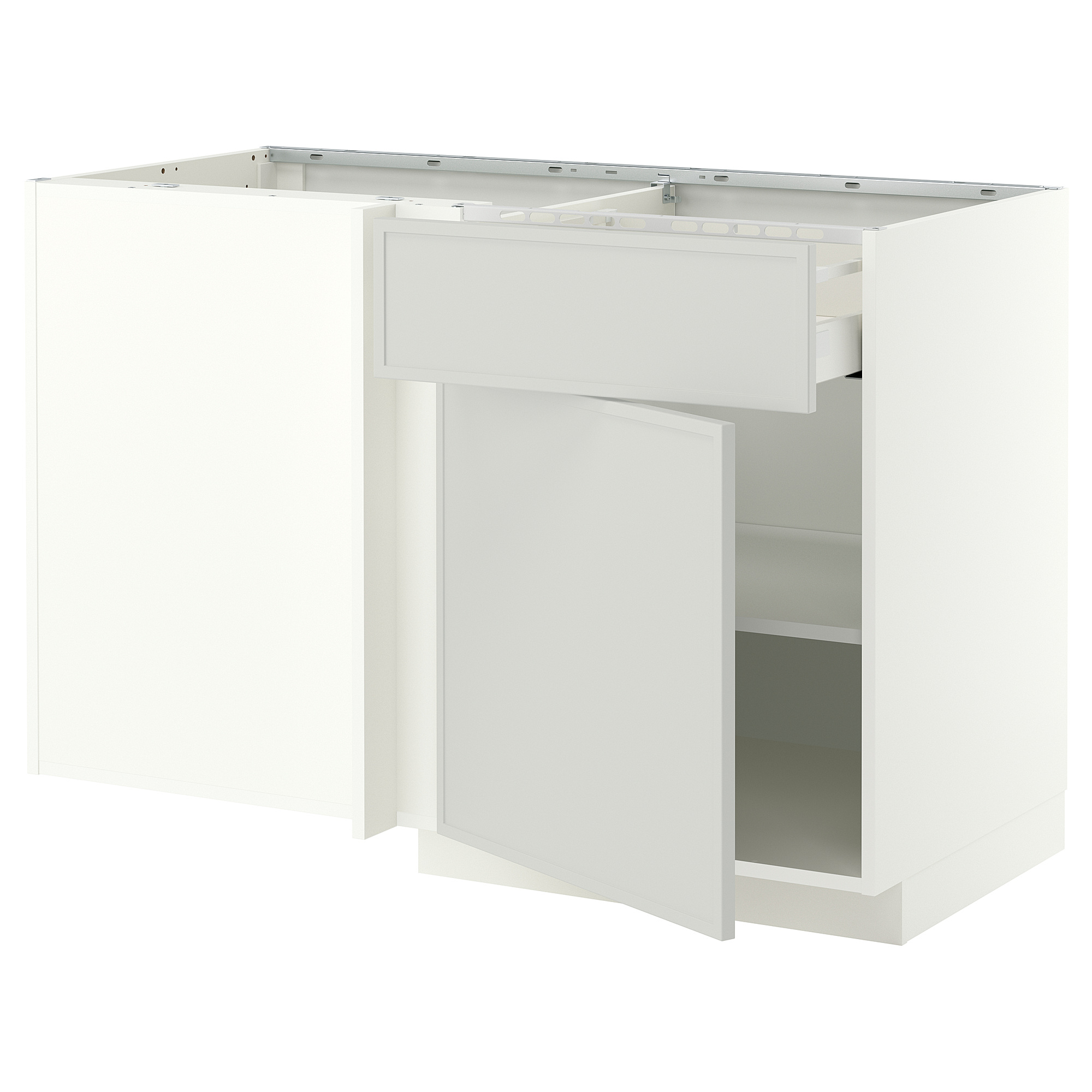 Kabin dasar sudut dengan laci & rak, putih/aspudden abu-abu muda, 128x68x80 cm