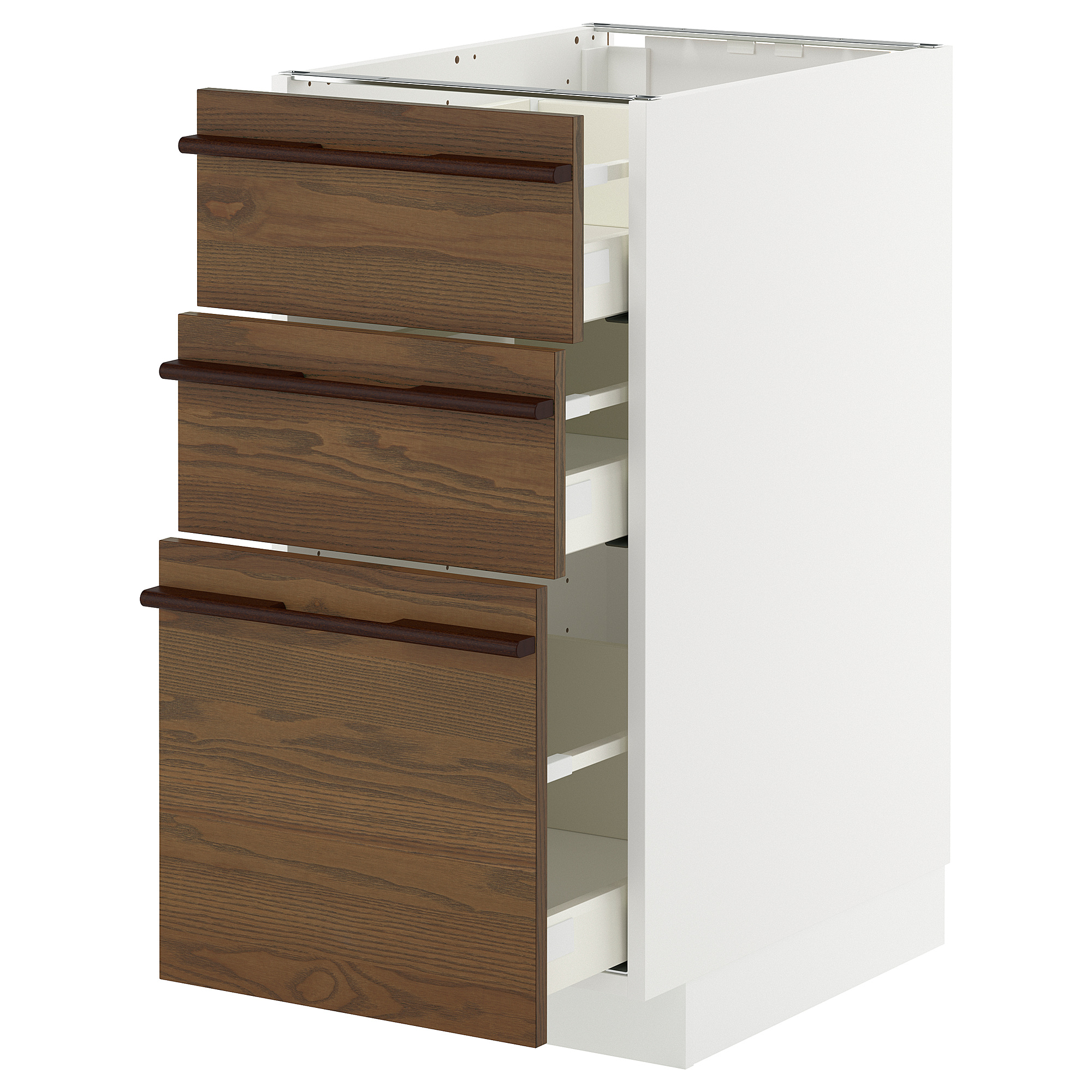 Sistem dapur METOD memberikan kemungkinan tak terbatas untuk merancang dapur impian Anda. Dipasangkan dengan bagian depan STENSTA dengan veneer abu bernoda coklat tua dengan gagang kayu solid, Anda akan mendapatkan ekspresi yang hangat dan bersemangat.
