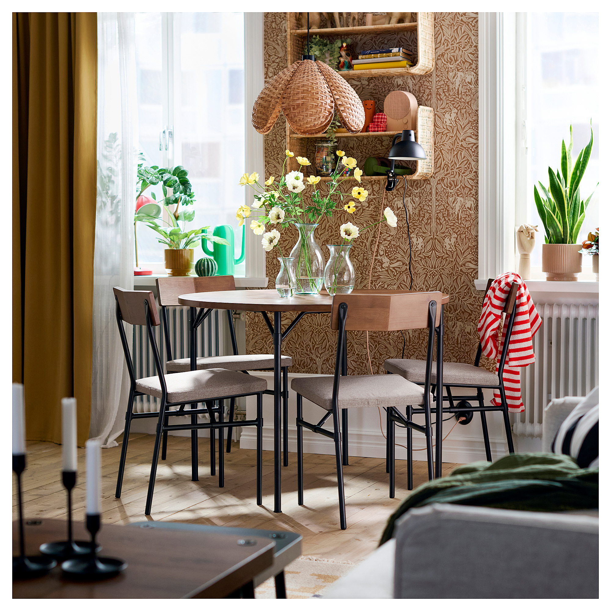 Lampu gantung ini memiliki desain yang abadi dan elegan sekaligus modern. Kelopak bunga rotan yang dianyam tangan memiliki nuansa vintage, namun kemasan datarnya sangat modern – dan mudah dibawa pulang.