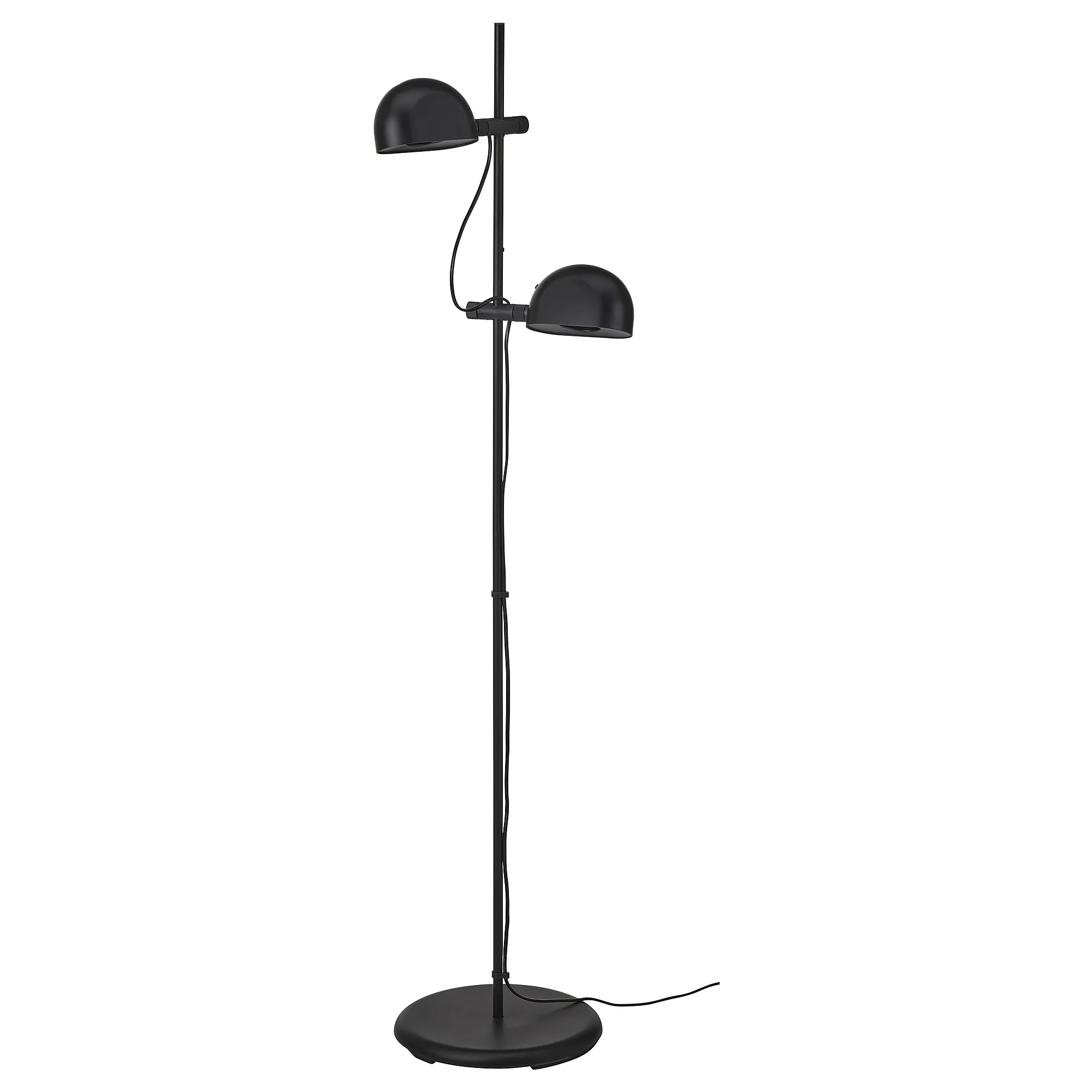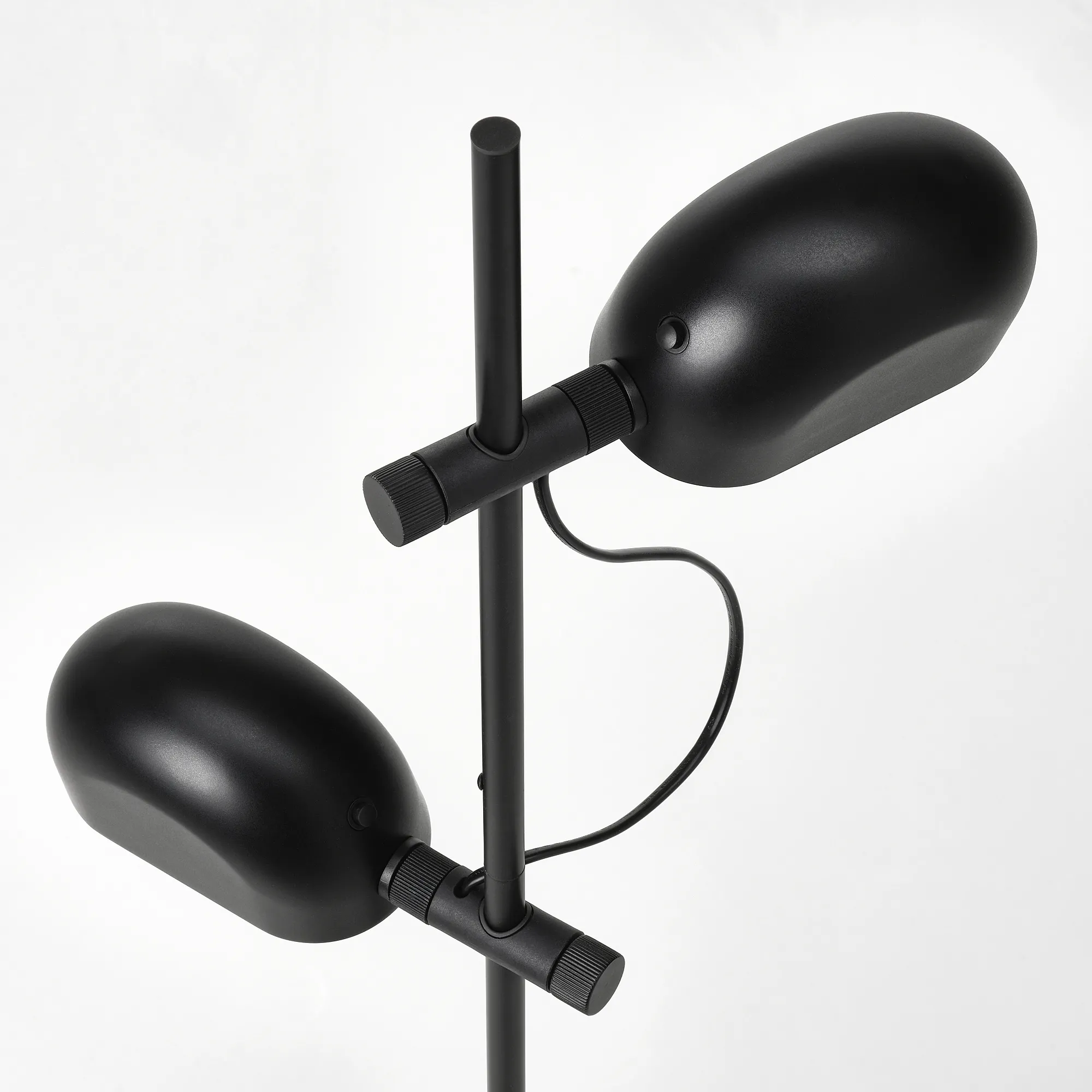 Lampu lantai ini memiliki dua kepala lampu yang dapat disesuaikan secara independen, masing-masing dengan tombol on/off sendiri. Kepala lampu dapat berputar untuk mengarahkan cahaya ke tempat yang diperlukan, memberikan cahaya tugas yang baik.