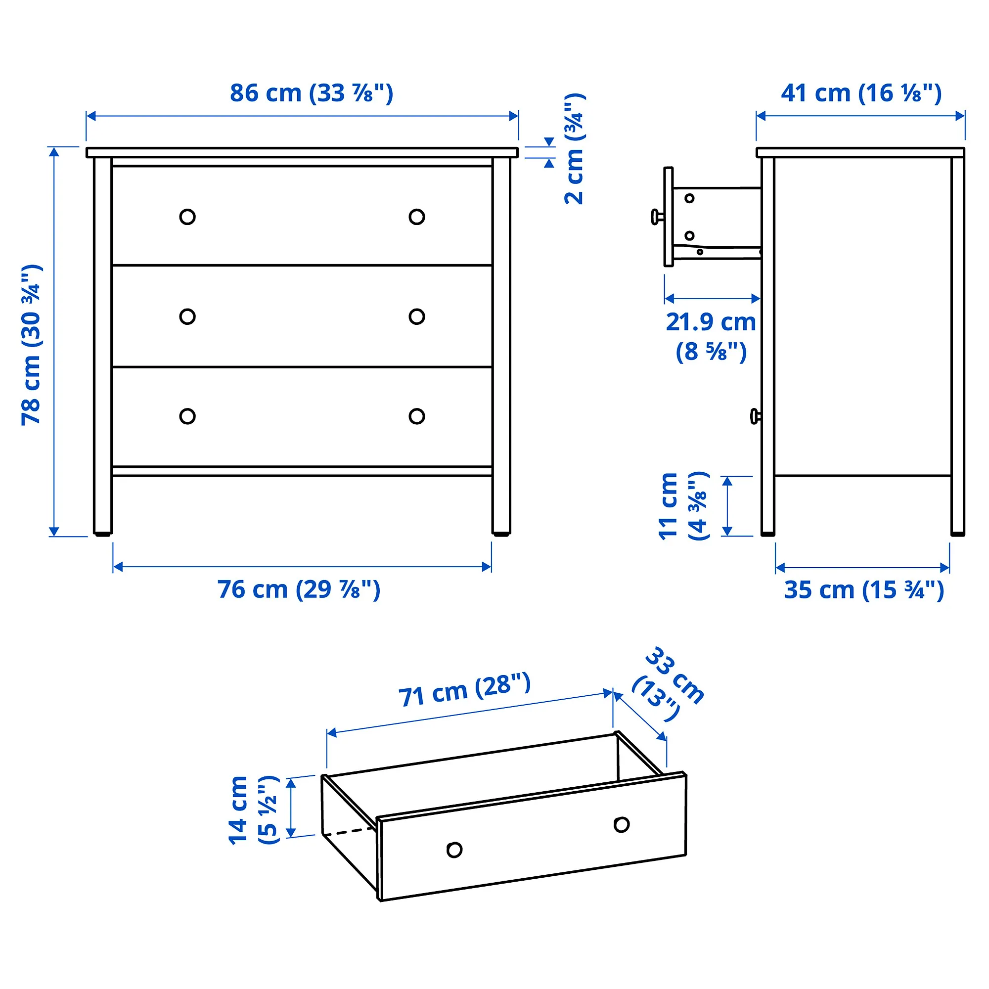 Lemari 3 laci, putih/fungsi ikat/buka, 86x78 cm