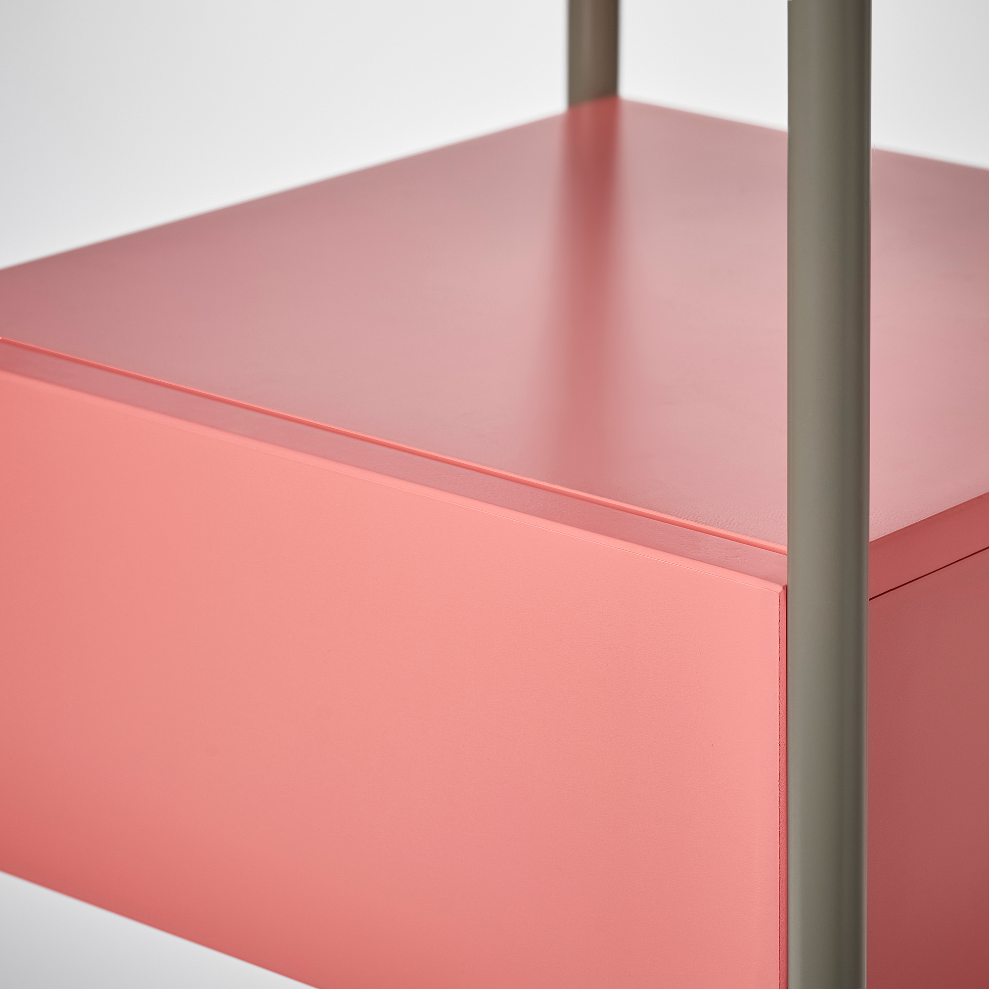 Sebuah semburat warna dengan fitur yang cerdas. Meja samping tempat tidur ini memiliki kesan lembut yang difokuskan pada detail. Jaga agar semuanya tetap rapi dengan menyimpan barang-barang kecil Anda di dalam laci - dan pajangan bagus di atasnya.
