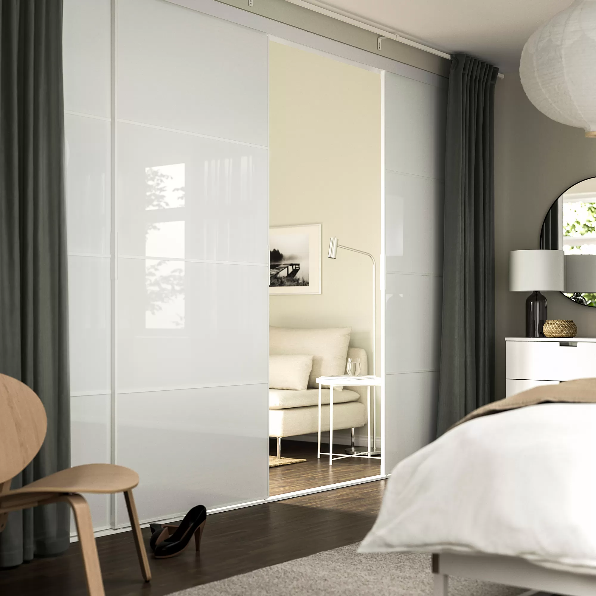 Rangka pintu dan rel SKYTTA tersedia dalam warna putih, hitam, dan aluminium.