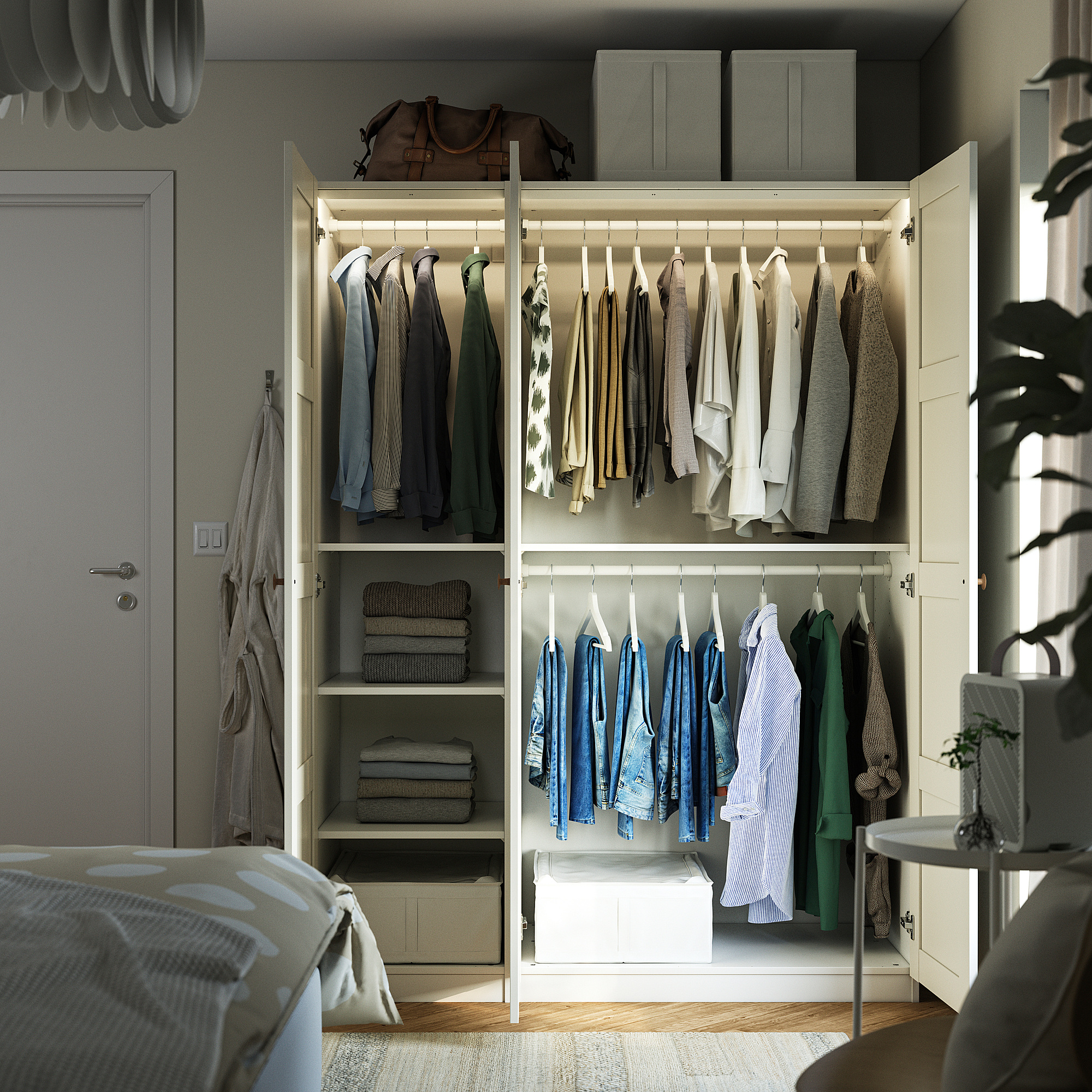 Buka solusi ini di perencana PAX untuk mengubahnya agar sesuai dengan kebutuhan Anda. Laci lain? Lebih sedikit? Tambahkan rangka atau ganti pintu? Tidak ada masalah.