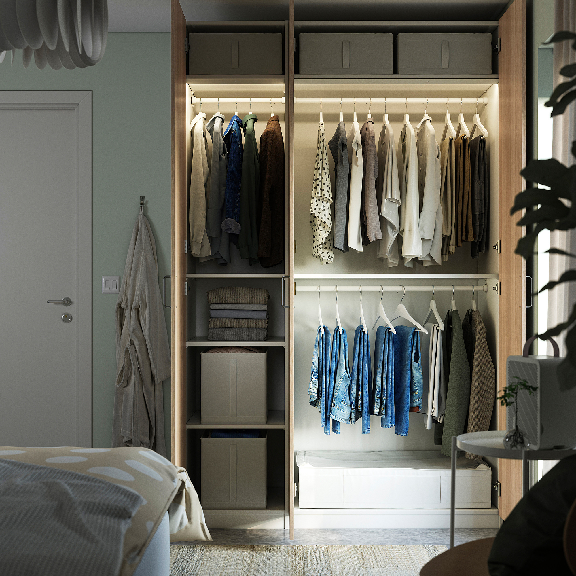 Buka solusi ini di perencana PAX untuk mengubahnya agar sesuai dengan kebutuhan Anda. Laci lain? Lebih sedikit? Tambahkan rangka atau ganti pintu? Tidak ada masalah.