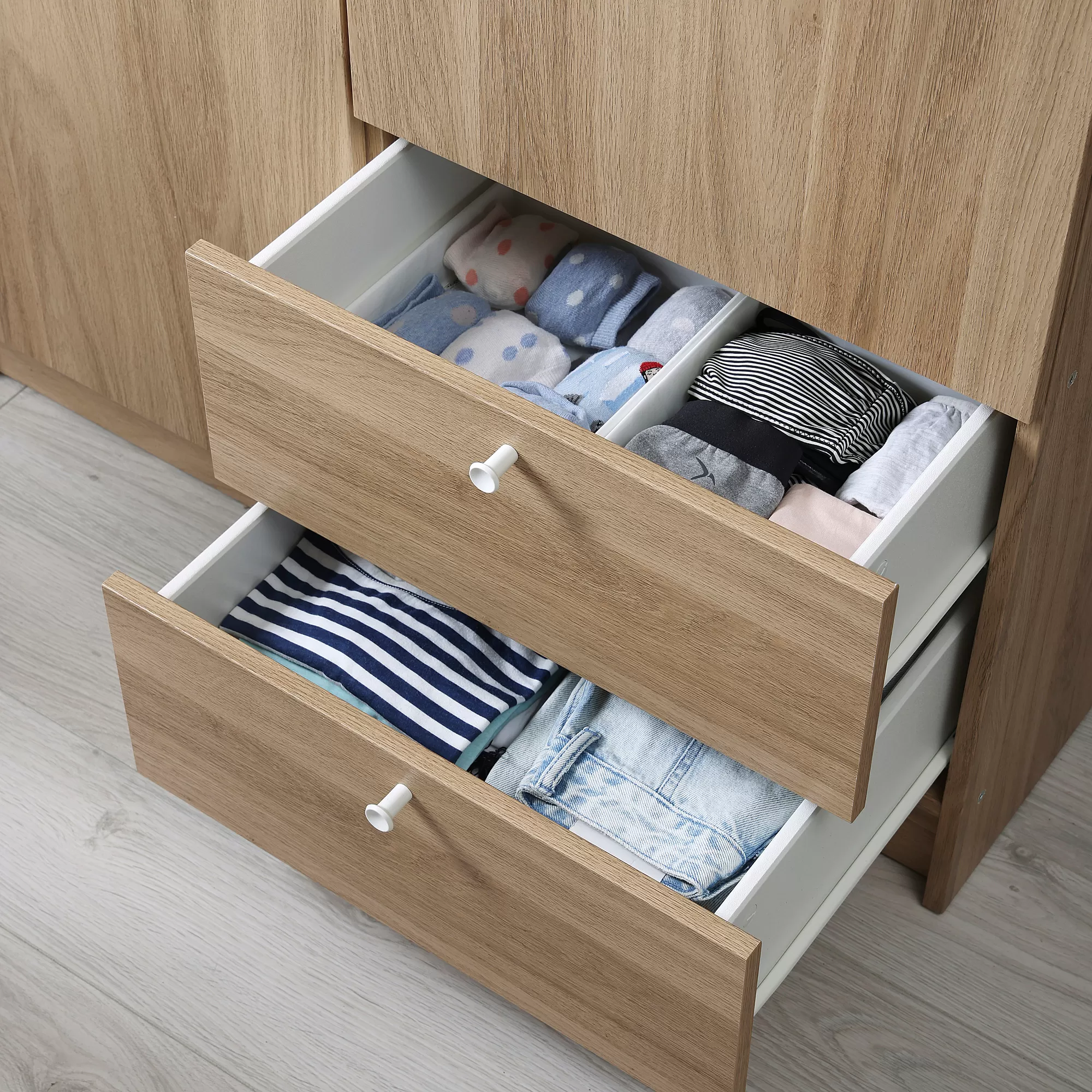 Lemari pakaian 2 pintu dg 2 laci, efek kayu oak, 98x57x190 cm