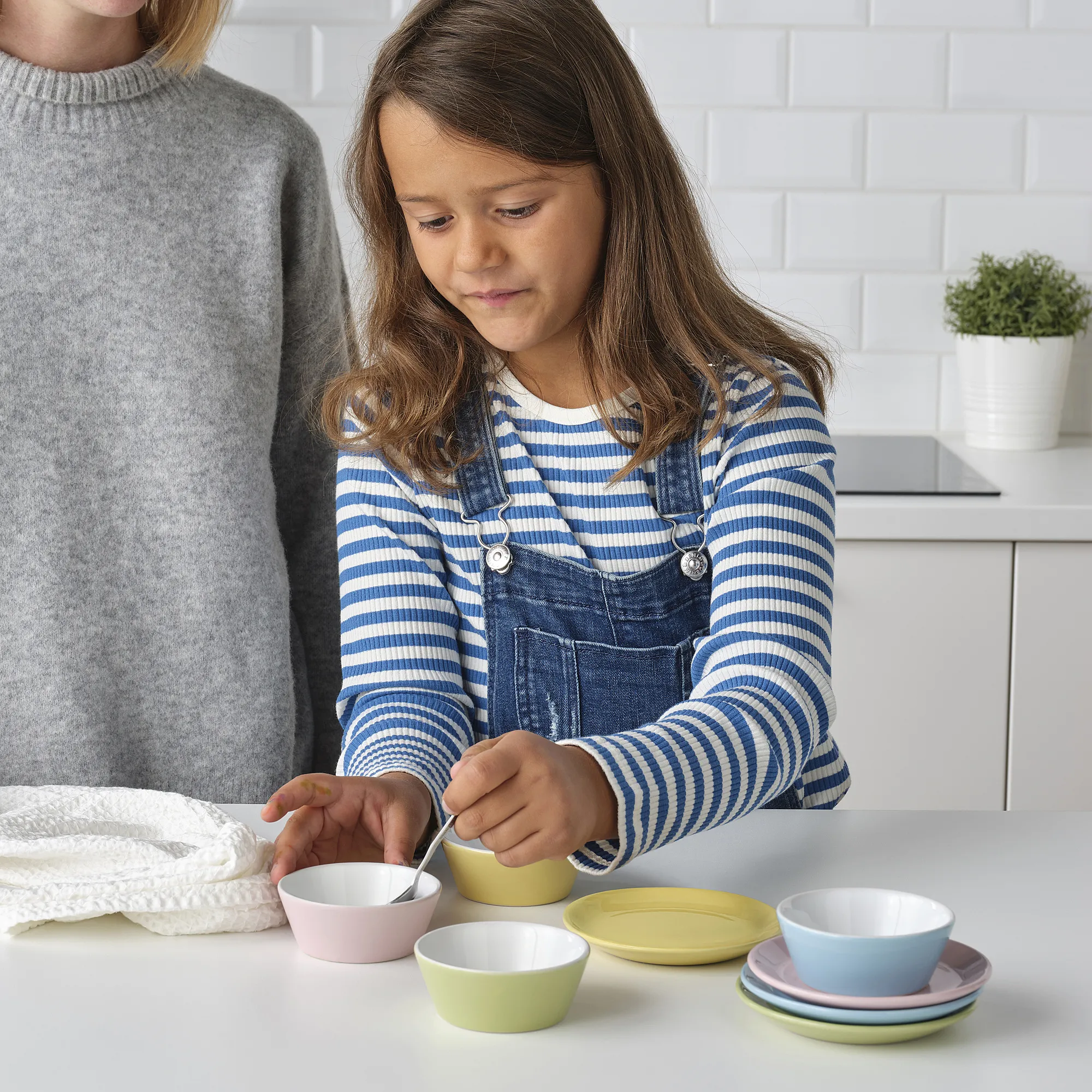 Terdiri dari: 4 piring dan 4 mangkuk dengan warna pastel yang serasi.
